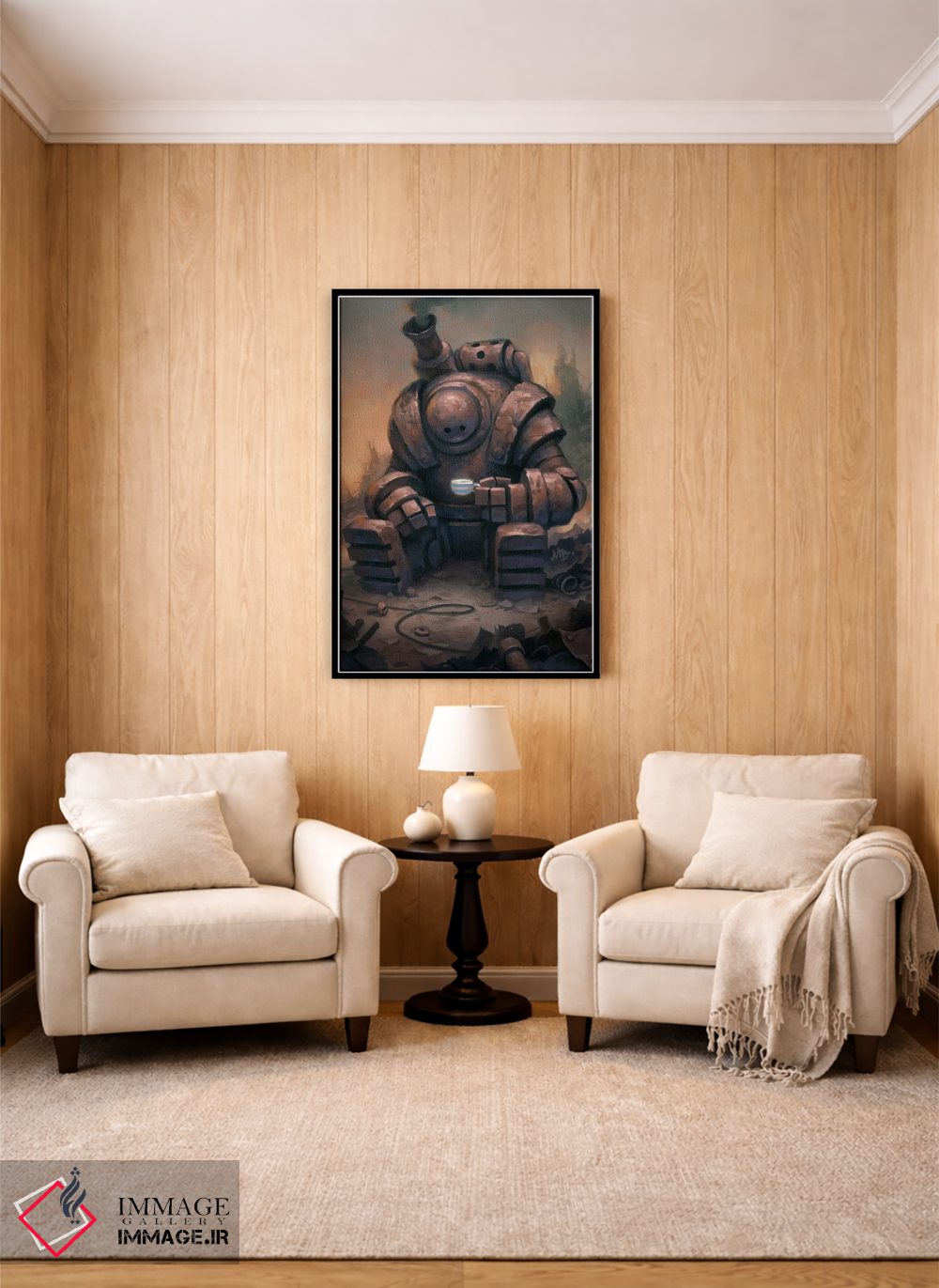 براساس پالت گرم اثر، قاب تیک گرم (چوبی) پیشنهاد اول است و مشکی مات (فریم متوسط) مکمل. برای سفارشهای پروژهای با ابعاد و قابهای اختصاصی با ایماژ در تماس باشید.