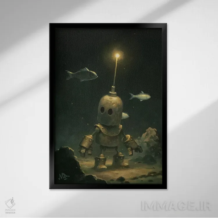 براساس پالت ترکیبی اثر، قاب تیک گرم (چوبی) پیشنهاد اول است و مشکی مات (فریم متوسط) مکمل. برای سفارشهای پروژهای با ابعاد و قابهای اختصاصی با ایماژ در تماس باشید.
