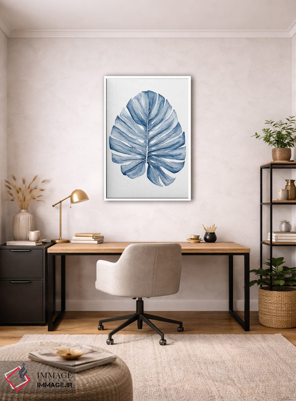 برای اتاق خواب و نشیمنهای آرام، «برگهای استوایی نیلی I» اثرِ «مگان میگر» جزئیات نزدیک را چشمنواز نشان میدهد؛ برای هدیه دادن انتخابی خوشسلیقه است. در کنار گیاهان آپارتمانی، هماهنگتر هم میشود.