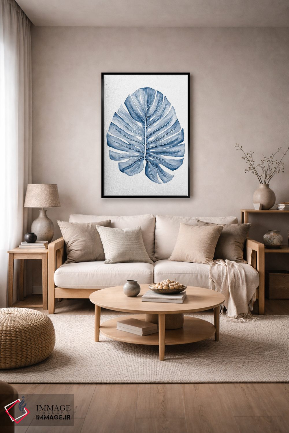 اگر میخواهید اثر برجستهتر شود، آبی را در یک تابلو کوچک مکمل در نظر بگیرید تا هماهنگی بیصدا اما موثر باشد. انتخاب قاب هم میتواند بهخوبی این اکسنت را تقویت کند.