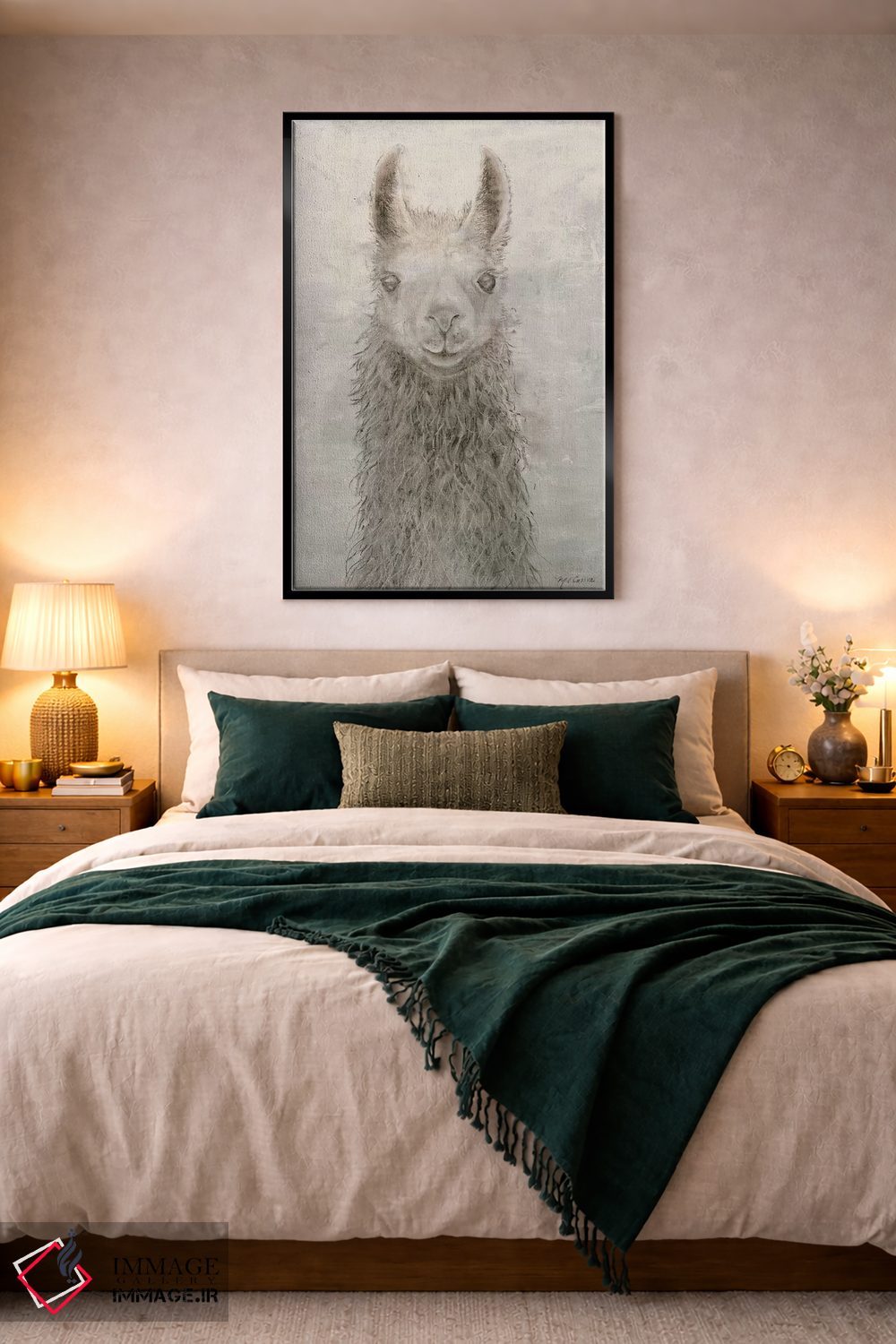 برای دکورهای صمیمی، «پرتره لاما» اثرِ «ماری الین کوسون» مثل یک امضای بامزه اما متین عمل میکند؛ برای اتاق بازی یا گوشهٔ مطالعه انتخابی خوشسلیقه است. با قاب چوبی یا مشکی، حس مرتبتری پیدا میکند.
