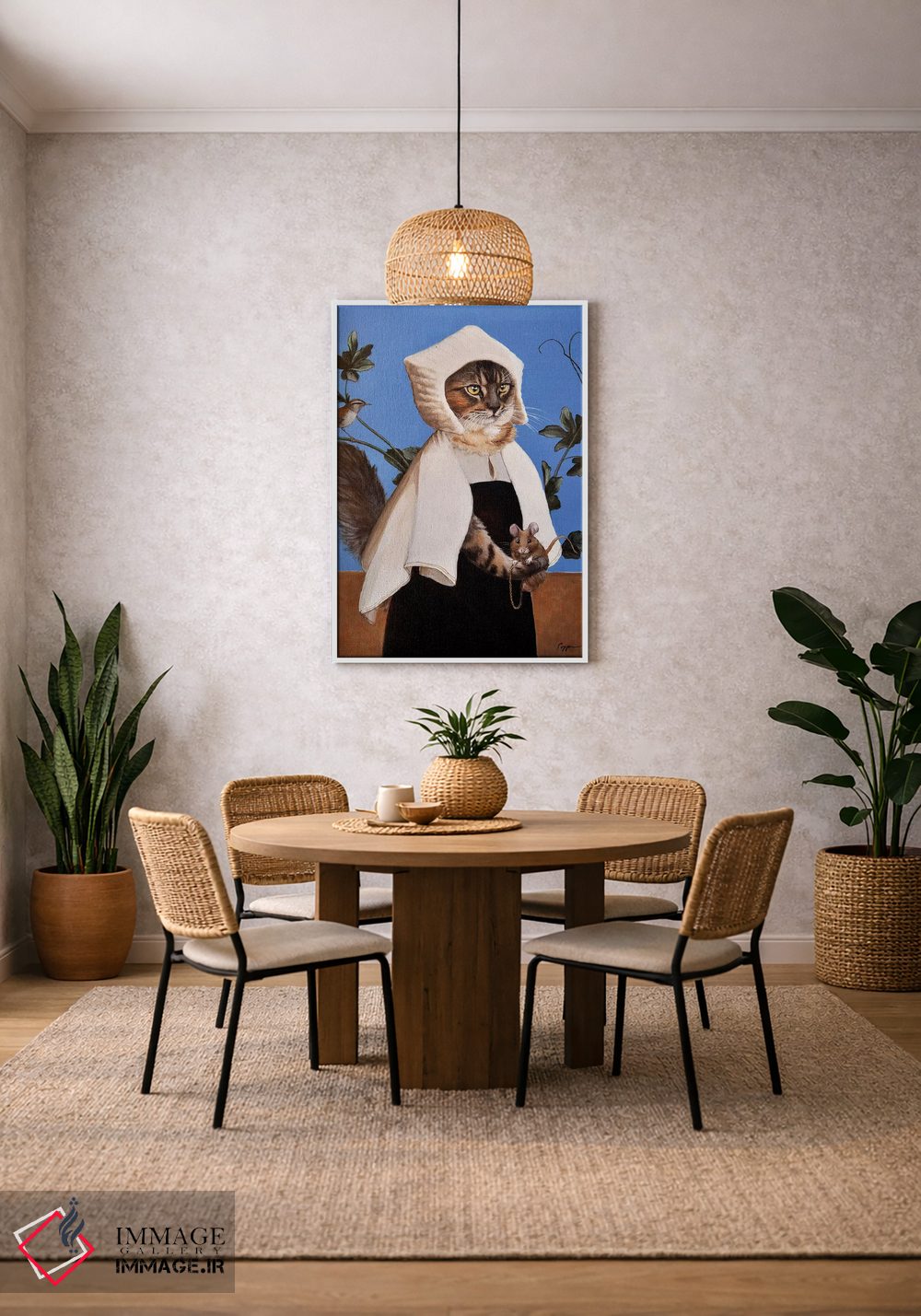 براساس پالت ترکیبی اثر، قاب تیک گرم (چوبی) پیشنهاد اول است و مشکی مات (فریم متوسط) مکمل. برای سفارشهای پروژهای با ابعاد و قابهای اختصاصی با ایماژ در تماس باشید.