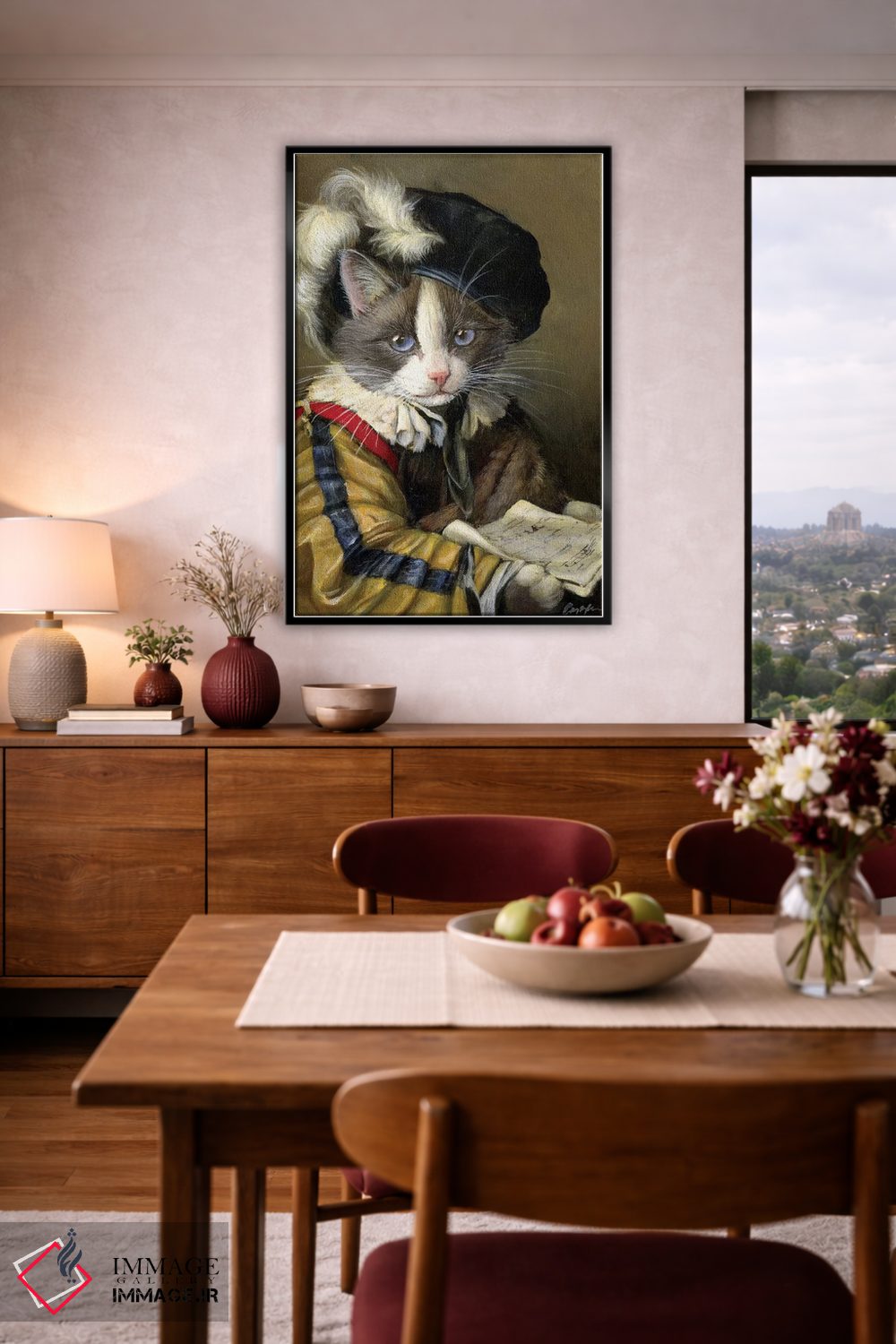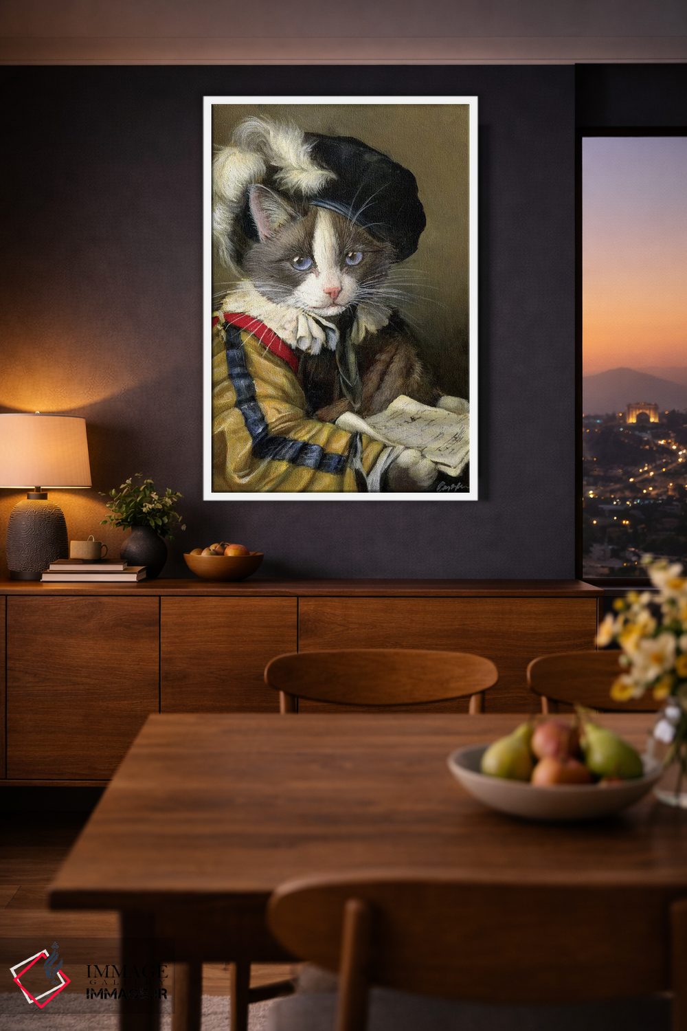 براساس پالت گرم اثر، قاب بلوط روشن (چوبی) پیشنهاد اول است و استخوانی ملایم مکمل. برای سفارشهای پروژهای با ابعاد و قابهای اختصاصی با ایماژ در تماس باشید.