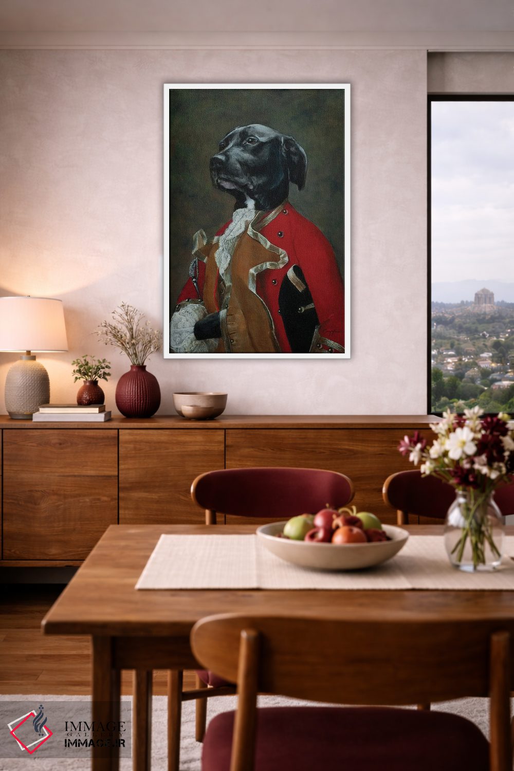 براساس پالت گرم اثر، قاب بلوط روشن (چوبی) پیشنهاد اول است و استخوانی ملایم مکمل. برای سفارشهای پروژهای با ابعاد و قابهای اختصاصی با ایماژ در تماس باشید.