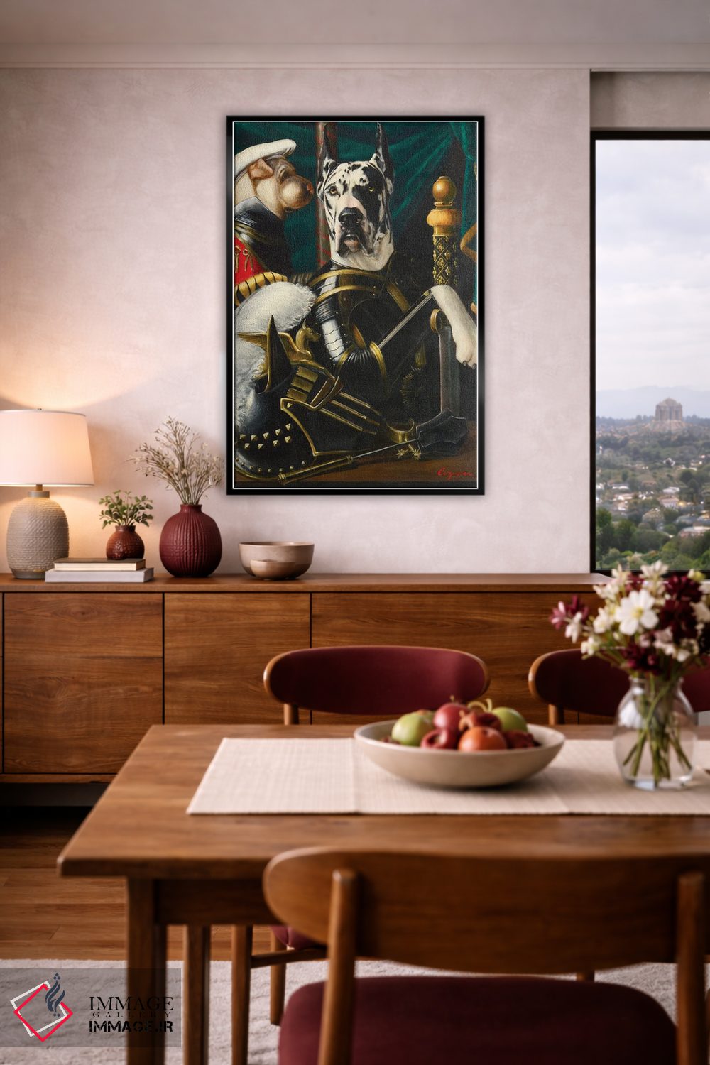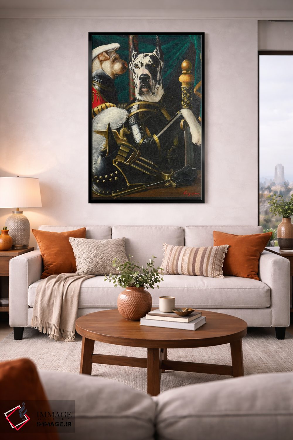 براساس پالت گرم اثر، قاب بلوط روشن (چوبی) پیشنهاد اول است و استخوانی ملایم مکمل. برای سفارشهای پروژهای با ابعاد و قابهای اختصاصی با ایماژ در تماس باشید.