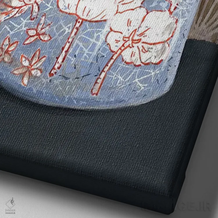 تابلو مدرن گلدان گل دار آبی کم رنگ اثر میری اشت - نمای نزدیک بافت بوم