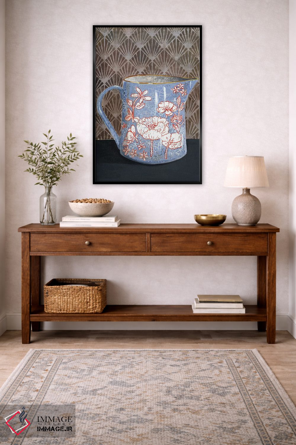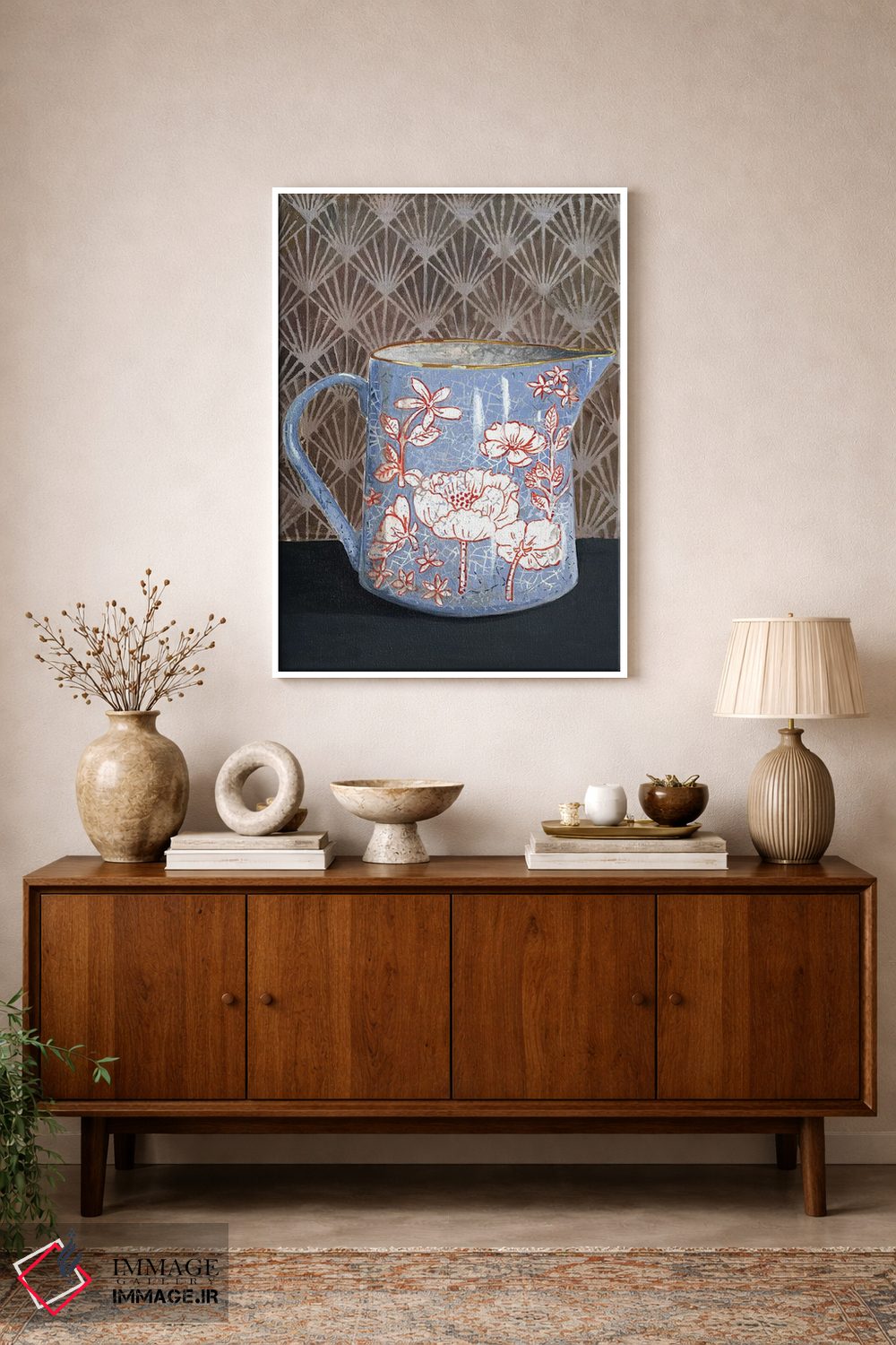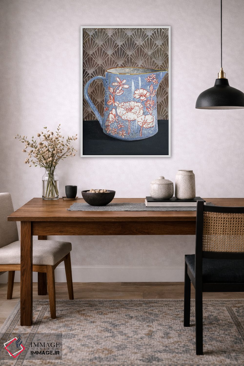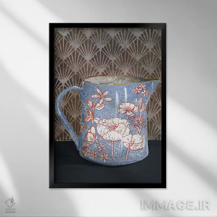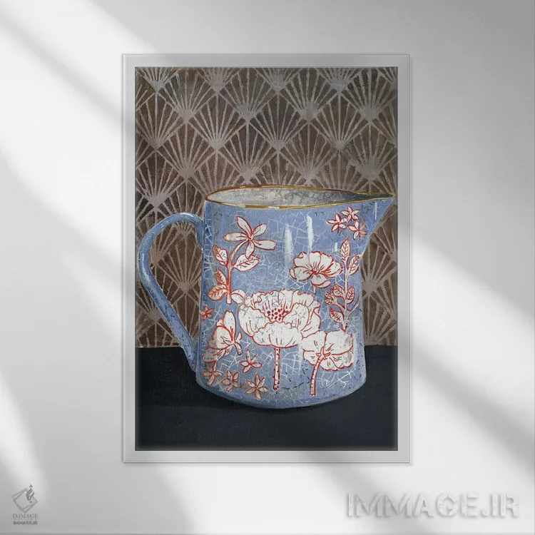 تابلو مدرن گلدان گل دار آبی کم رنگ اثر میری اشت - نمای پرسپکتیو محصول