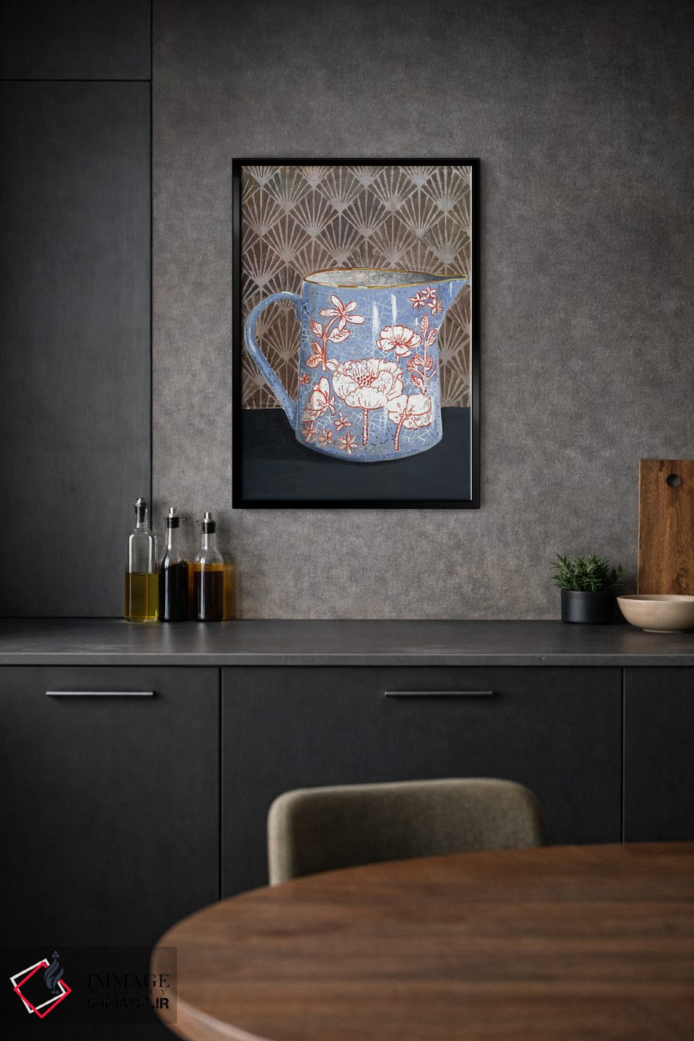 تابلو مدرن گلدان گل دار آبی کم رنگ اثر میری اشت - D1W