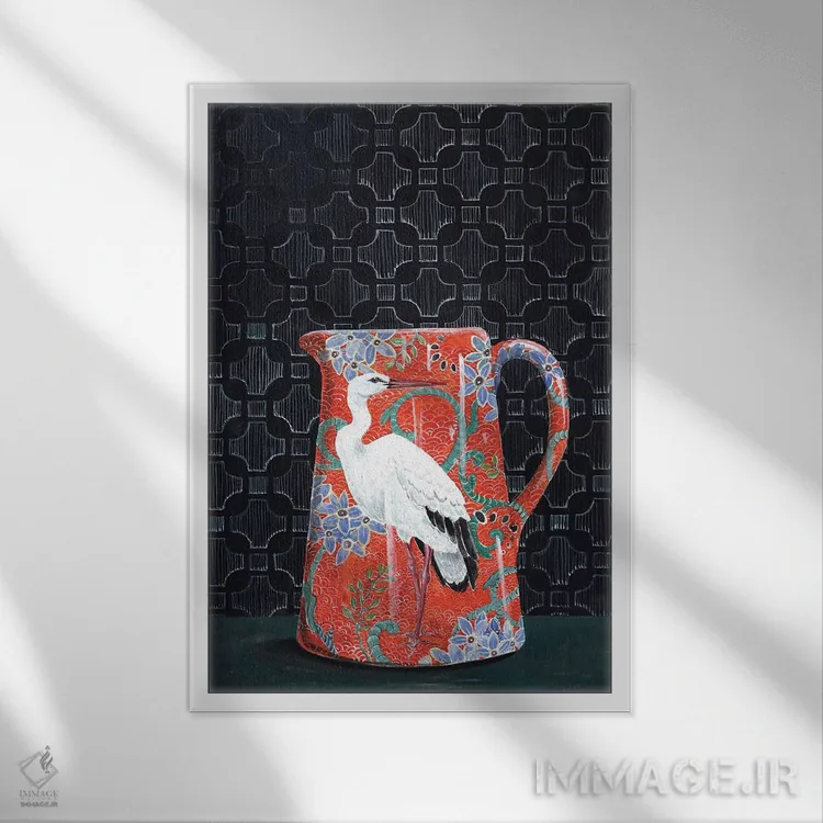 تابلو مدرن پارچ قرمز با نقش لک لک اثر میری اشت