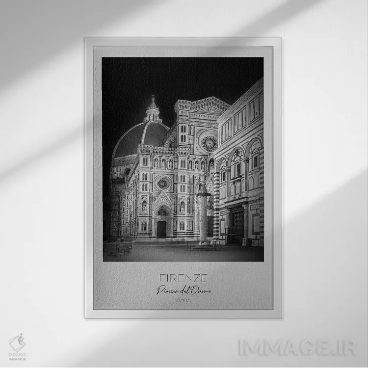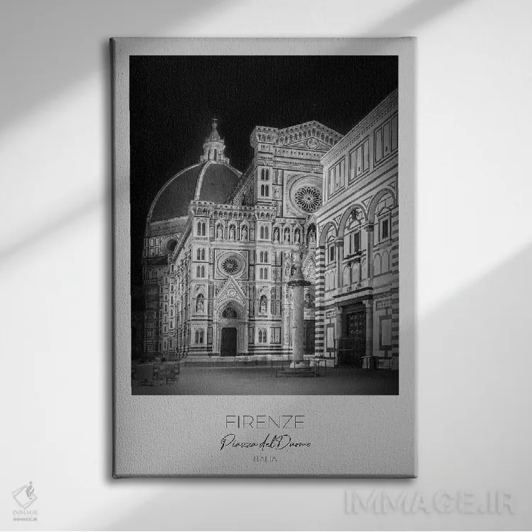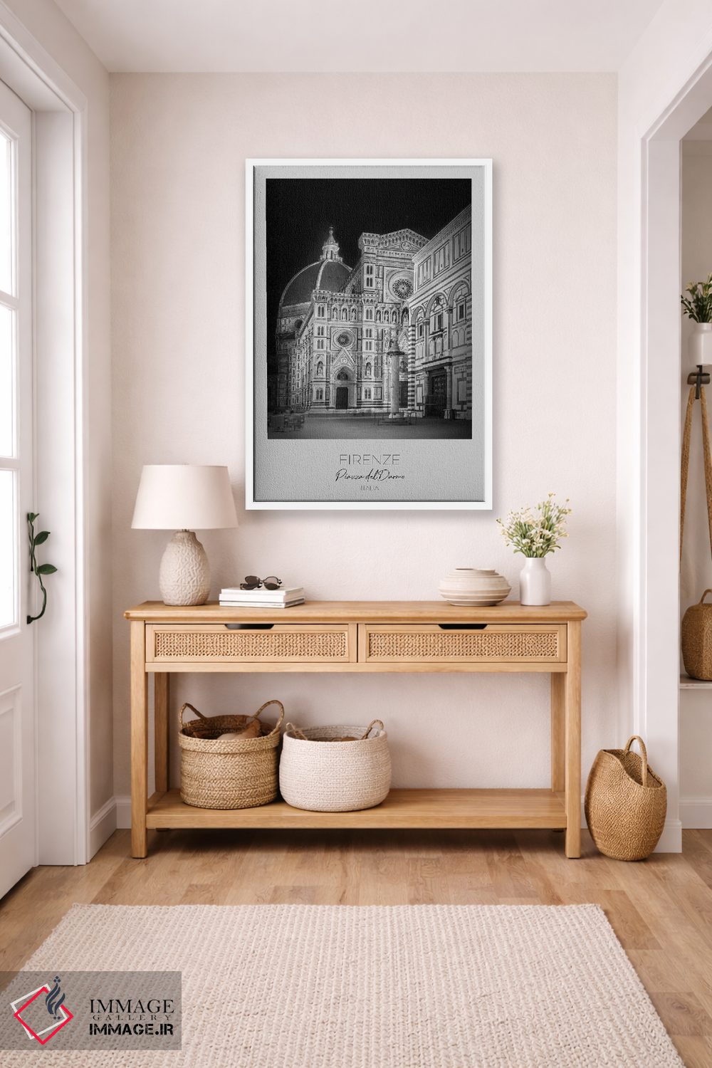 «در کانون توجه: کلیسای جامع فلورانس و غسلتعمیدگاه» اثرِ «ملانی ویولا» در فضای عکاسی سیاهوسفید، روی نور و کنتراست تکیه میکند؛ موضوعِ این اثر برای دکورهای مینیمال عالی است.
