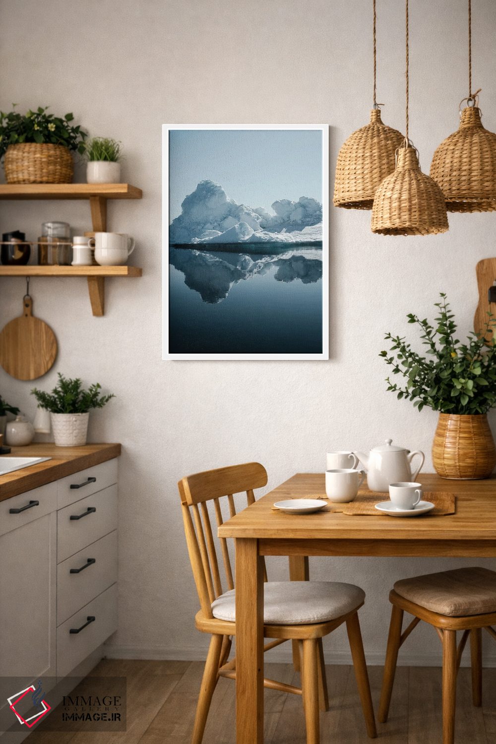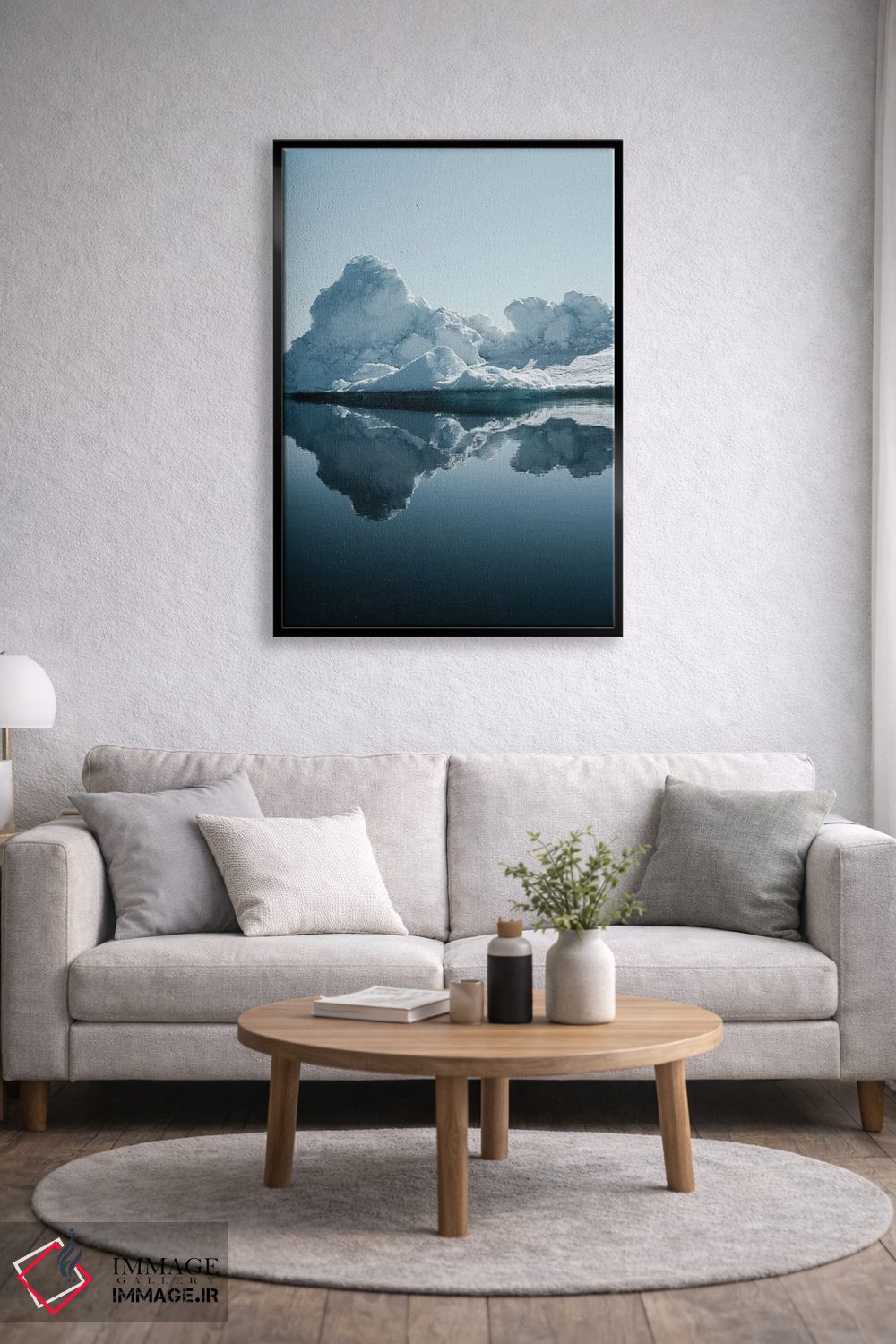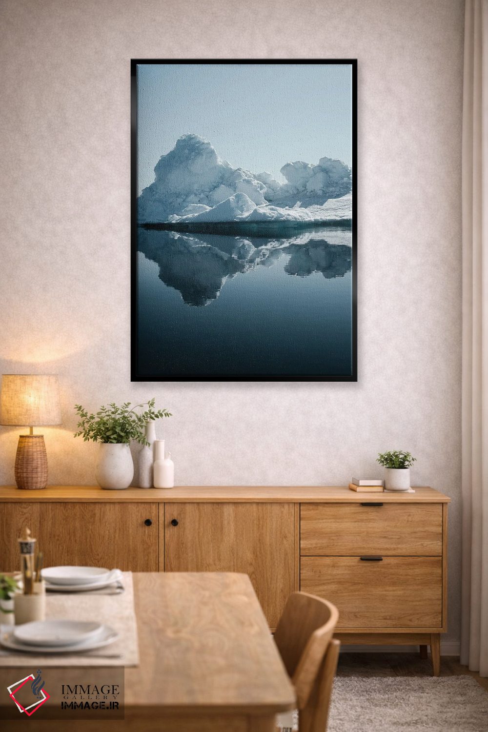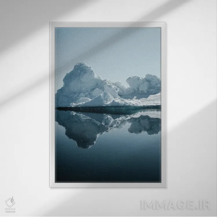 «کوههای یخی گرینلند» اثرِ «ملیسا فایندلی» یک تصویر تمیز و دقیق از این اثر است؛ مناسب دکورهای مدرن و مینیمال.
