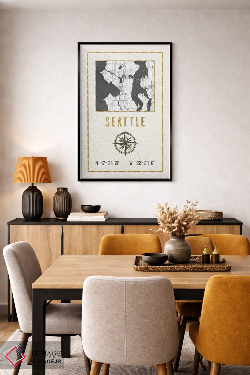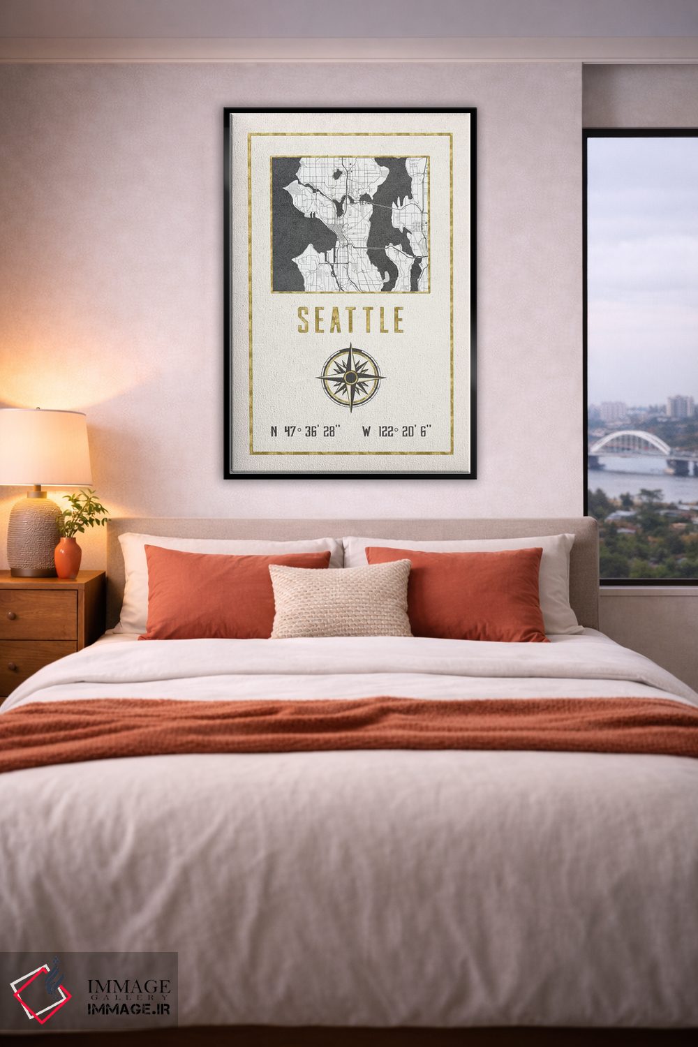 تابلو دکوراتیوِ «سیاتل، واشنگتن» با موضوعِ این اثر؛ مناسب برای نشیمن، اتاق خواب یا دیوار کنار میز ناهارخوری اثرِ «نیچر مجیک (برند یا استودیوی هنری)».