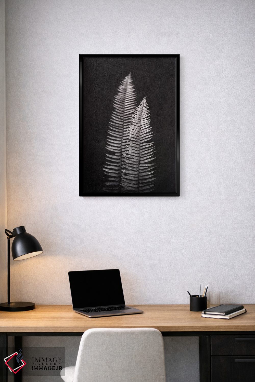 براساس پالت خنثی اثر، قاب مشکی مات (فریم باریک) پیشنهاد اول است و سفید مات (فریم باریک) مکمل. برای سفارشهای پروژهای با ابعاد و قابهای اختصاصی با ایماژ در تماس باشید.