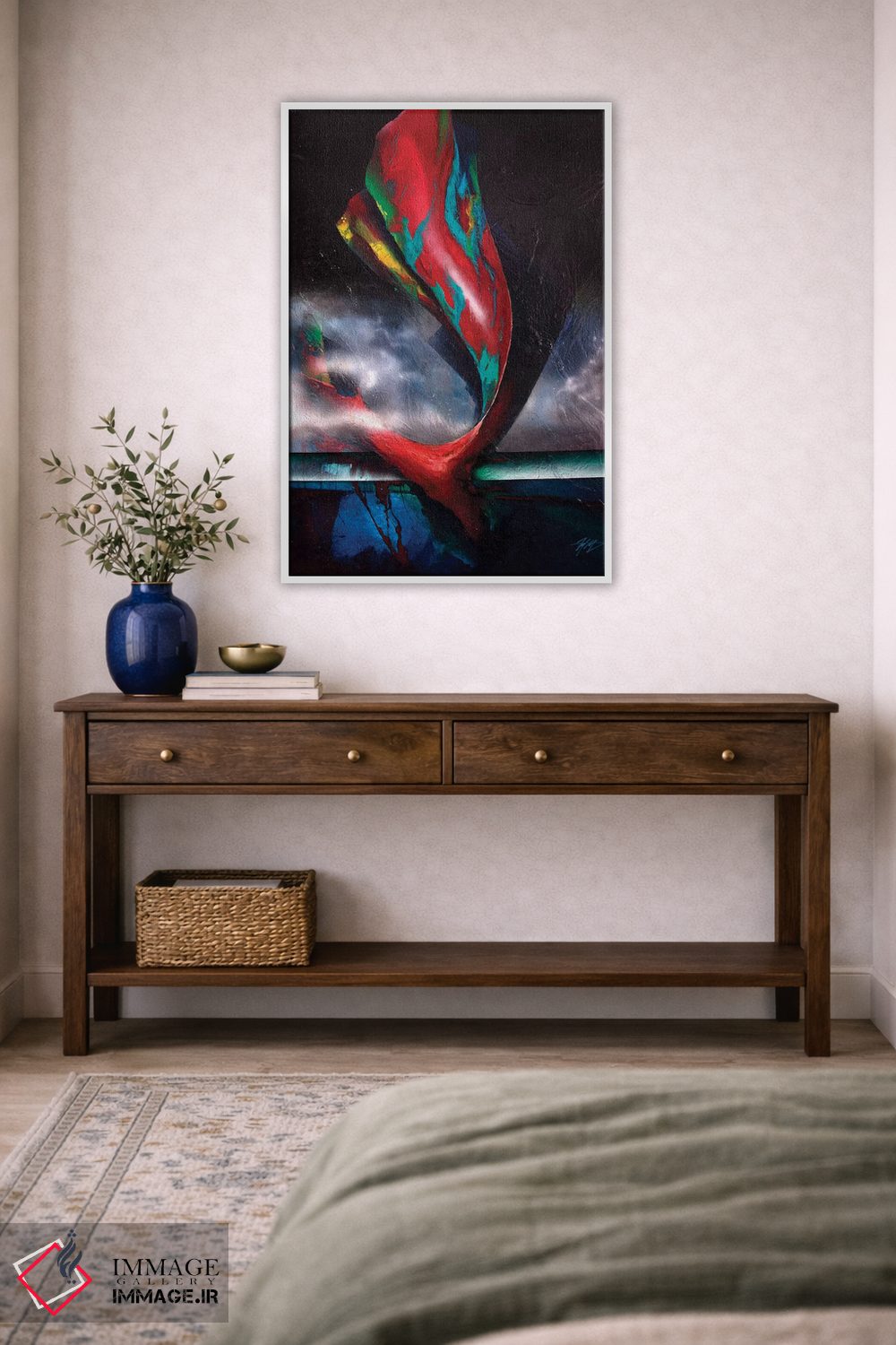 برای راهنمایی دربارهی قاب، اندازه یا سفارشهای ویژه، با ایماژ از طریق تماس—با—ما/">تماس با ما در ارتباط باشید. اگر تصمیم دارید اثر در محیط «مینیمال و آرام» دیده شود، انتخاب قاب مناسب کمک بزرگی است و چیدمان را یکدستتر نشان میدهد.