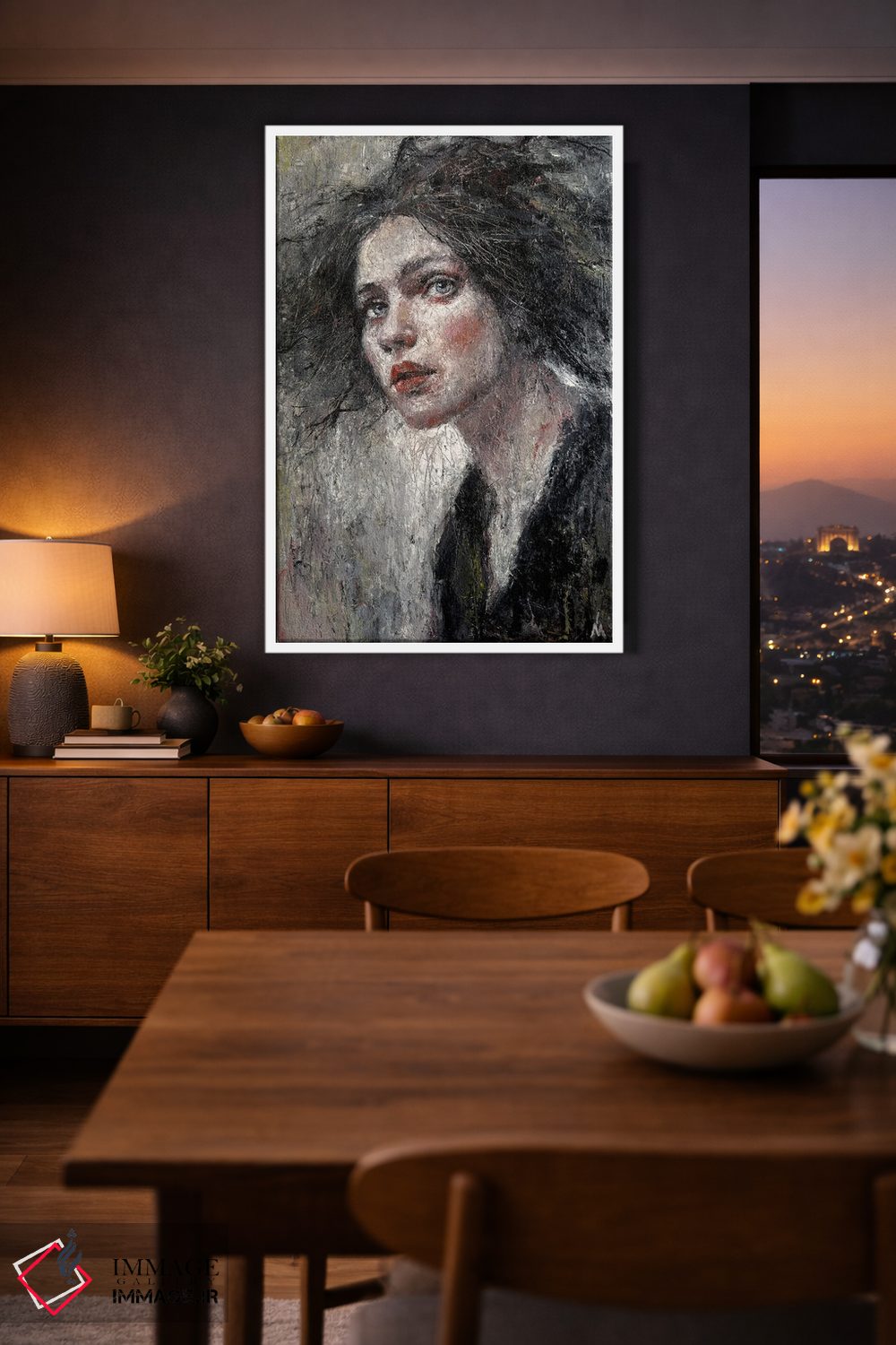براساس پالت گرم اثر، قاب تیک گرم (چوبی) پیشنهاد اول است و مشکی مات (فریم متوسط) مکمل. برای سفارشهای پروژهای با ابعاد و قابهای اختصاصی با ایماژ در تماس باشید.