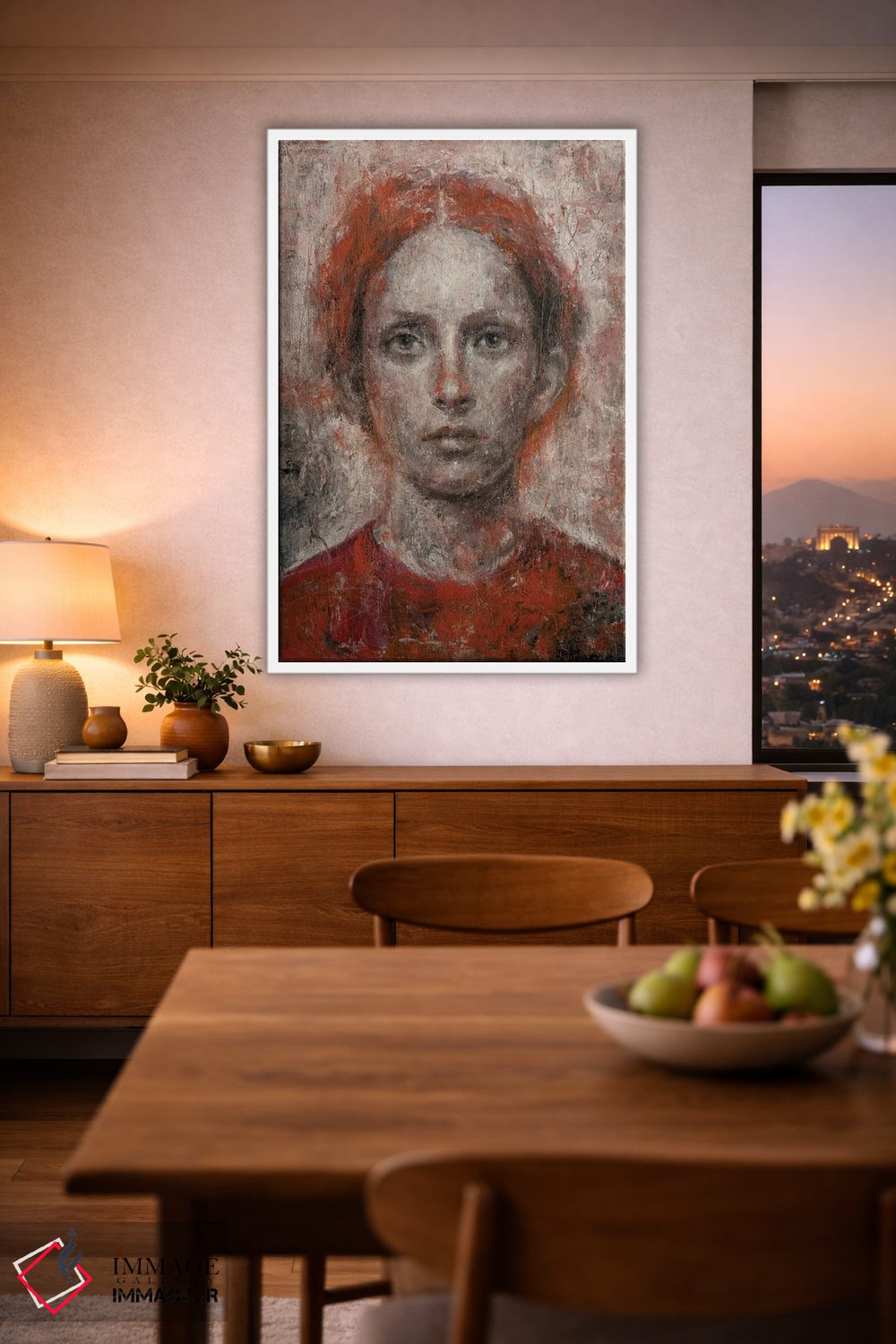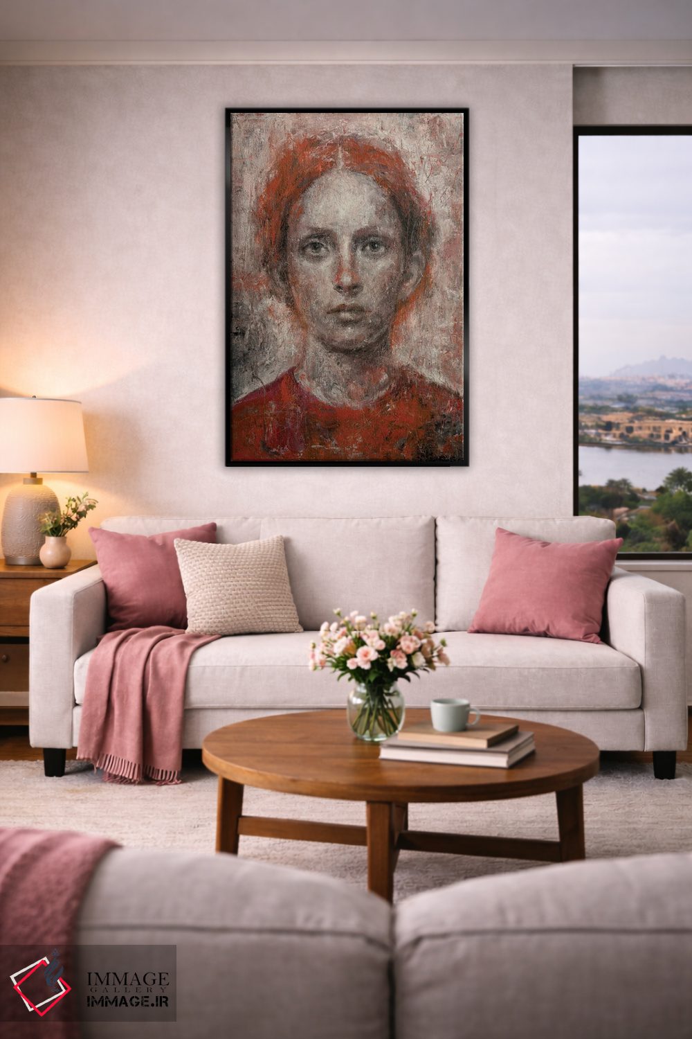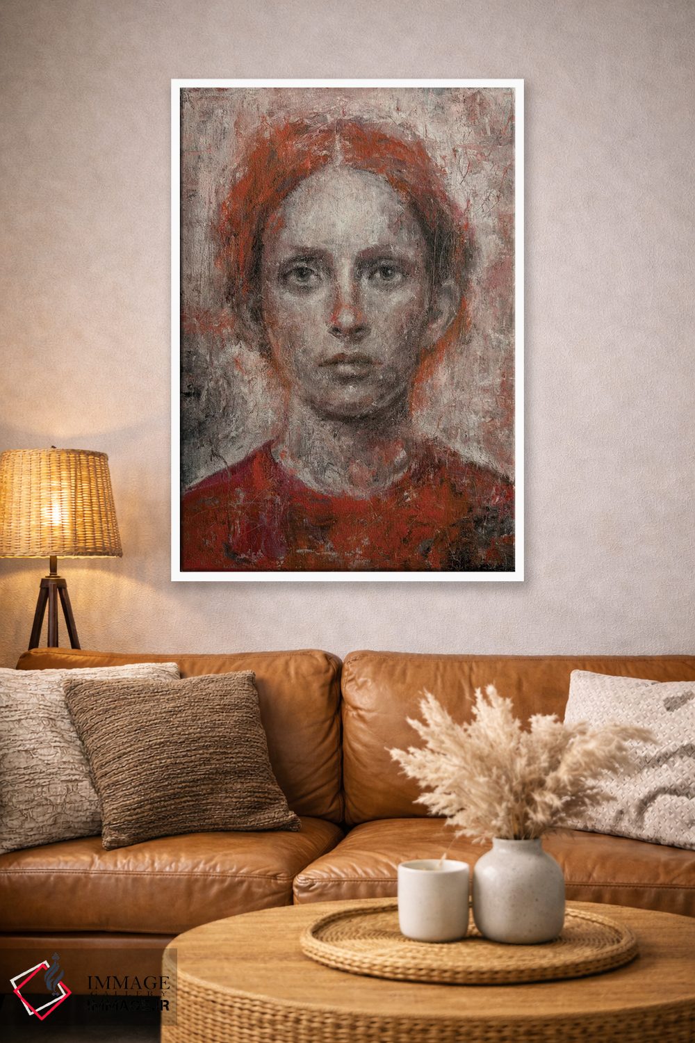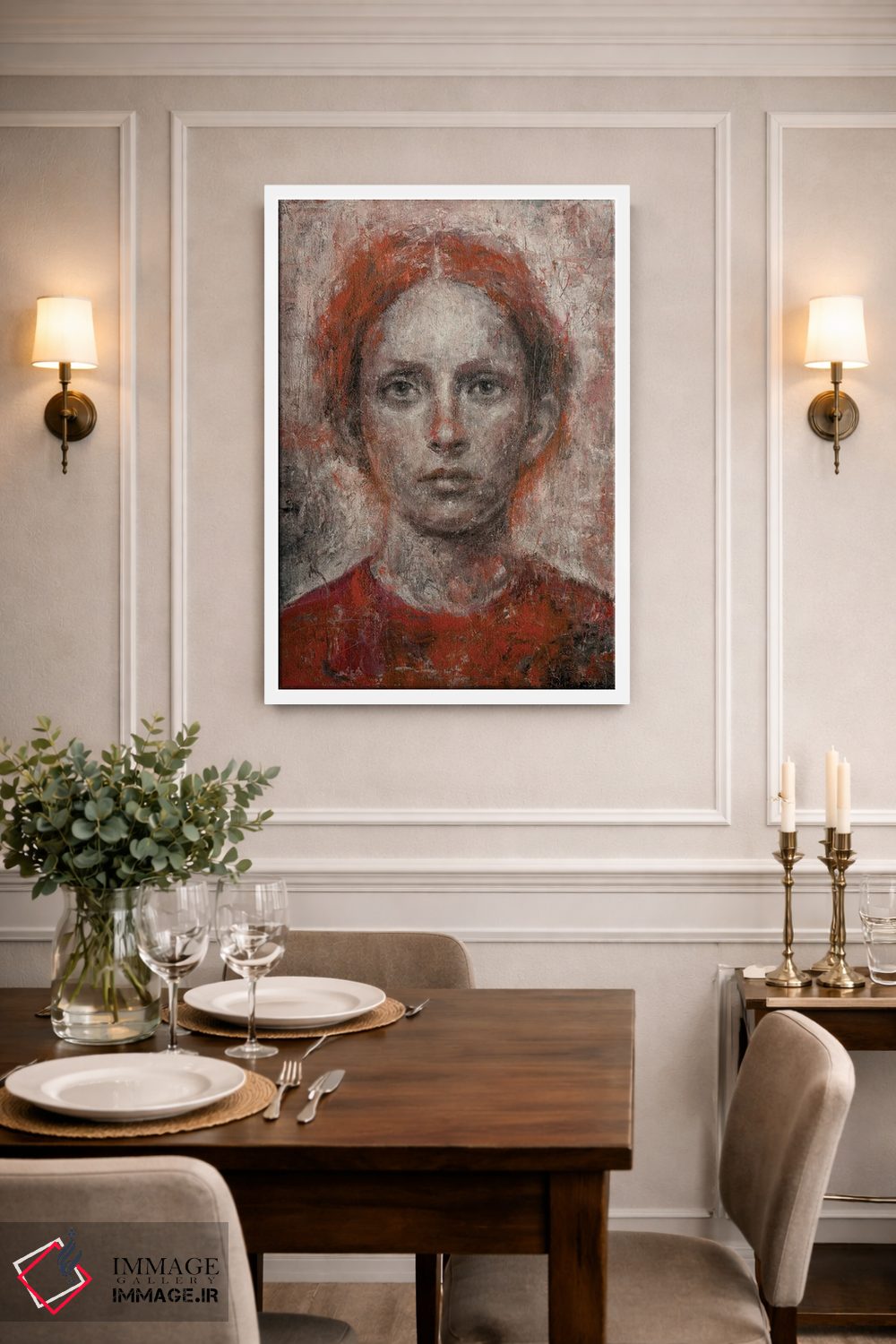 براساس پالت گرم اثر، قاب بلوط روشن (چوبی) پیشنهاد اول است و استخوانی ملایم مکمل. برای سفارشهای پروژهای با ابعاد و قابهای اختصاصی با ایماژ در تماس باشید.