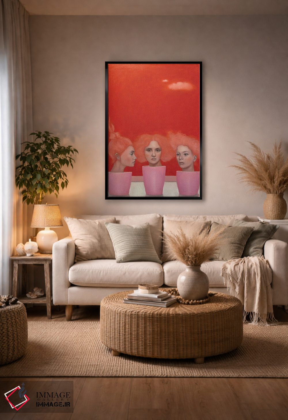 براساس پالت گرم اثر، قاب تیک گرم (چوبی) پیشنهاد اول است و مشکی مات (فریم متوسط) مکمل. برای سفارشهای پروژهای با ابعاد و قابهای اختصاصی با ایماژ در تماس باشید.
