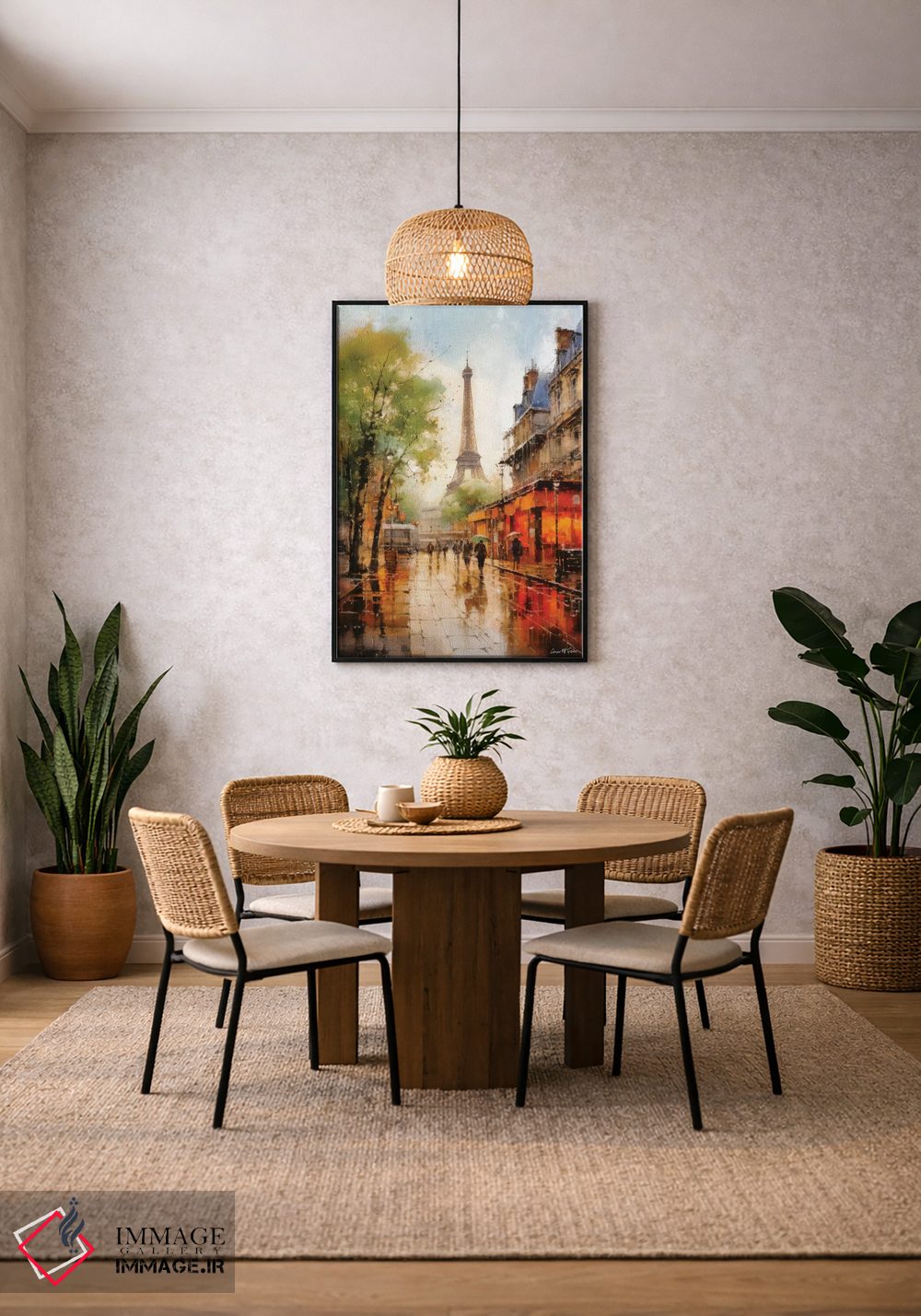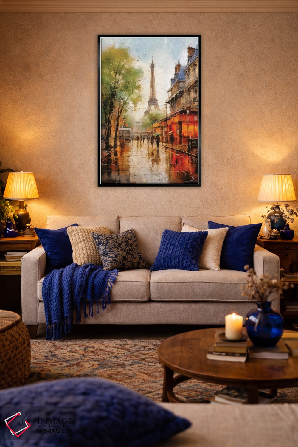 براساس پالت ترکیبی اثر، قاب تیک گرم (چوبی) پیشنهاد اول است و مشکی مات (فریم متوسط) مکمل. برای سفارشهای پروژهای با ابعاد و قابهای اختصاصی با ایماژ در تماس باشید.