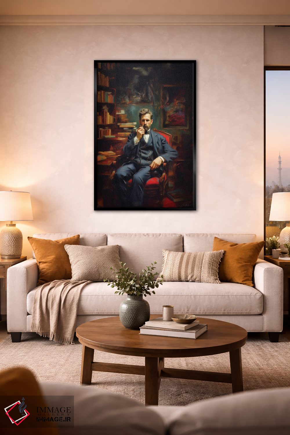 براساس پالت گرم اثر، قاب تیک گرم (چوبی) پیشنهاد اول است و مشکی مات (فریم متوسط) مکمل. برای سفارشهای پروژهای با ابعاد و قابهای اختصاصی با ایماژ در تماس باشید.