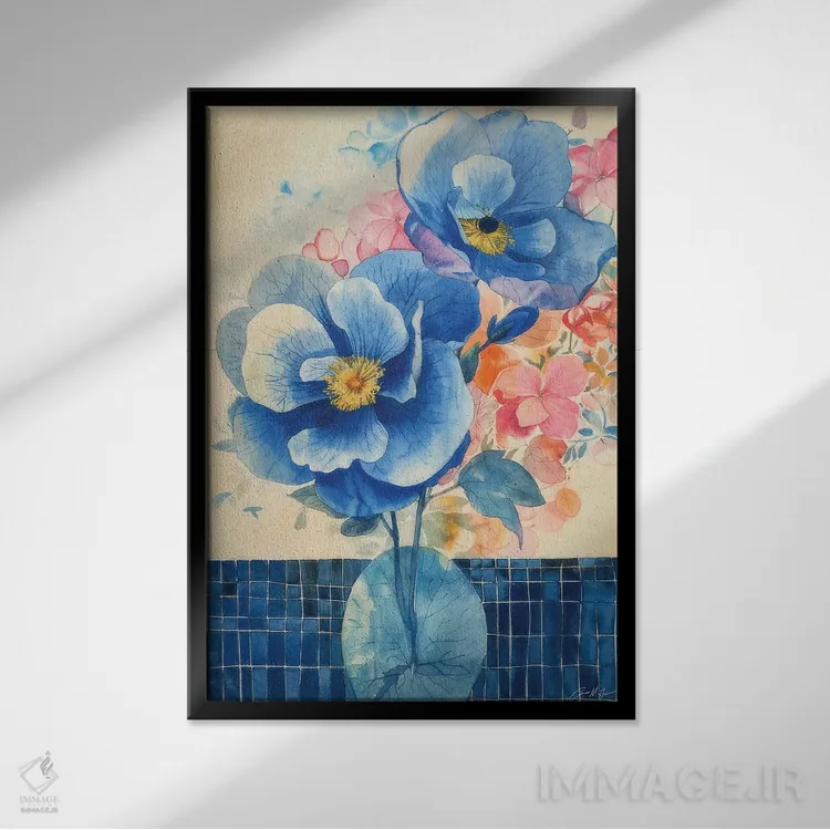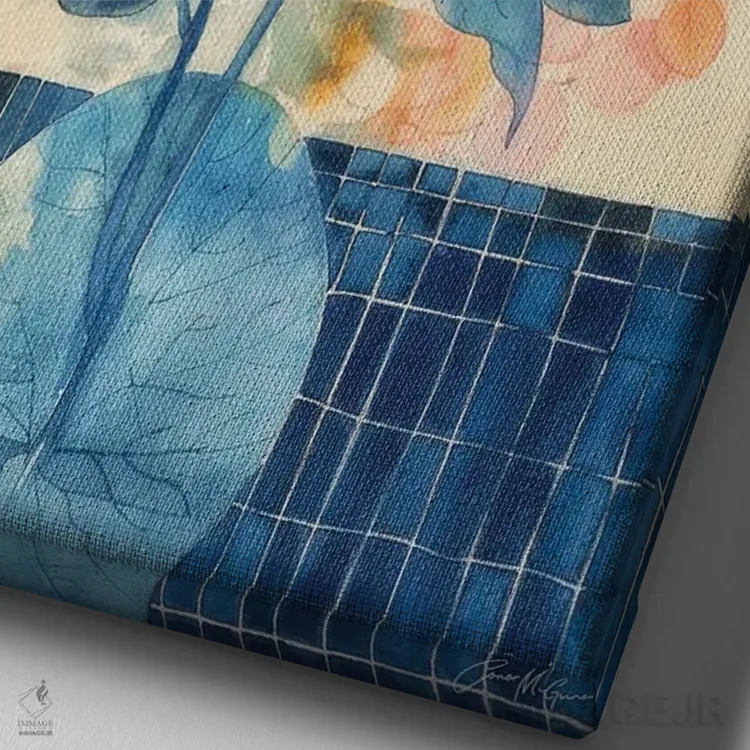 برای دیواری که میخواهید نرمتر دیده شود، «طرحهای گل آبی» اثرِ «کانر مکگوایر» جزئیات نزدیک را چشمنواز نشان میدهد؛ برای فضای غذاخوری انتخابی خوشسلیقه است. فضا را شلوغ نمیکند؛ فقط لطیفترش میکند.