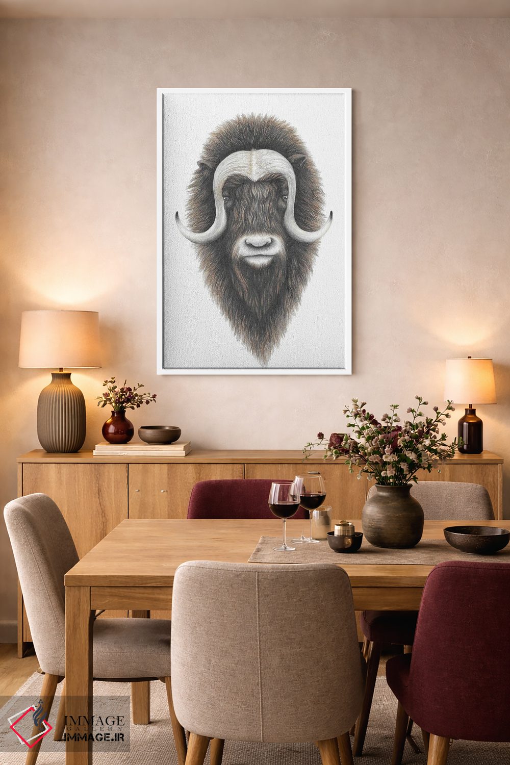 بوم گالری ایماژ طوری طراحی شده که اثر روی دیوار «پرداختشده» و حرفهای دیده شود—نه پرزرقوبرقِ بیپایه؛ بلکه دقیق و خوشپرداخت. با بافت ظریف کنواس، حس اثر هنری را در نگاه نزدیک نگه میدارد و نتیجه را یکدستتر میکند. رنگهای آرشیوی Epson UltraChrome HDR باعث میشود در سایهها جزئیات بیشتری حفظ میشود و نتیجه را یکدستتر میکند. حاصل کار، یک تابلو خوشنشین است که هم از دور اثرگذار است و هم از نزدیک خوشخوان؛ اگر فضا مینیمال است، همین پرداخت تمیز کافی است.
