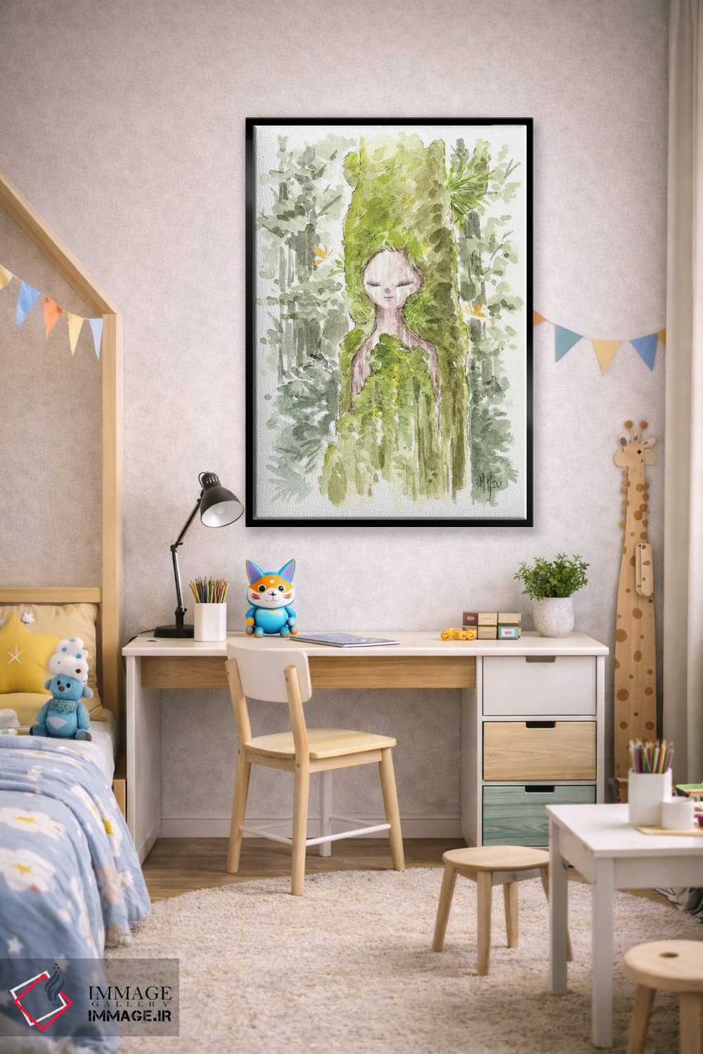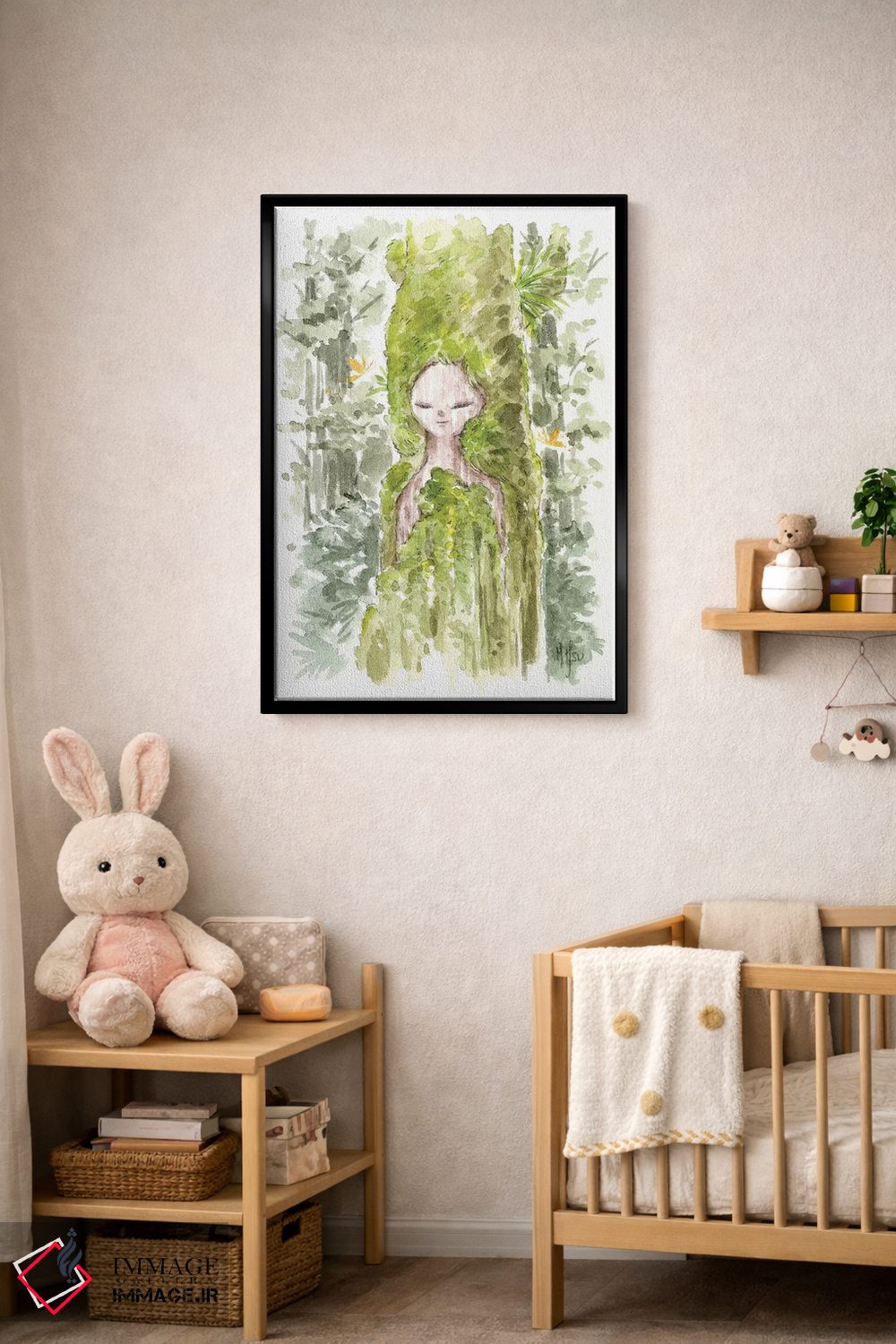 براساس پالت ترکیبی اثر، قاب بلوط روشن (چوبی) پیشنهاد اول است و استخوانی ملایم مکمل. برای سفارشهای پروژهای با ابعاد و قابهای اختصاصی با ایماژ در تماس باشید.