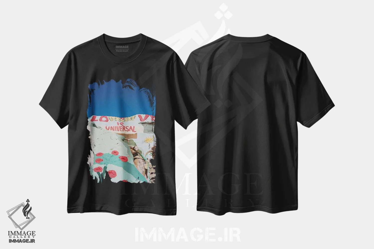 تیشرت مشکی طرح دار عشق جهانی است، مدیوم اثر بثانی یانگ | فروشگاه ایماژ