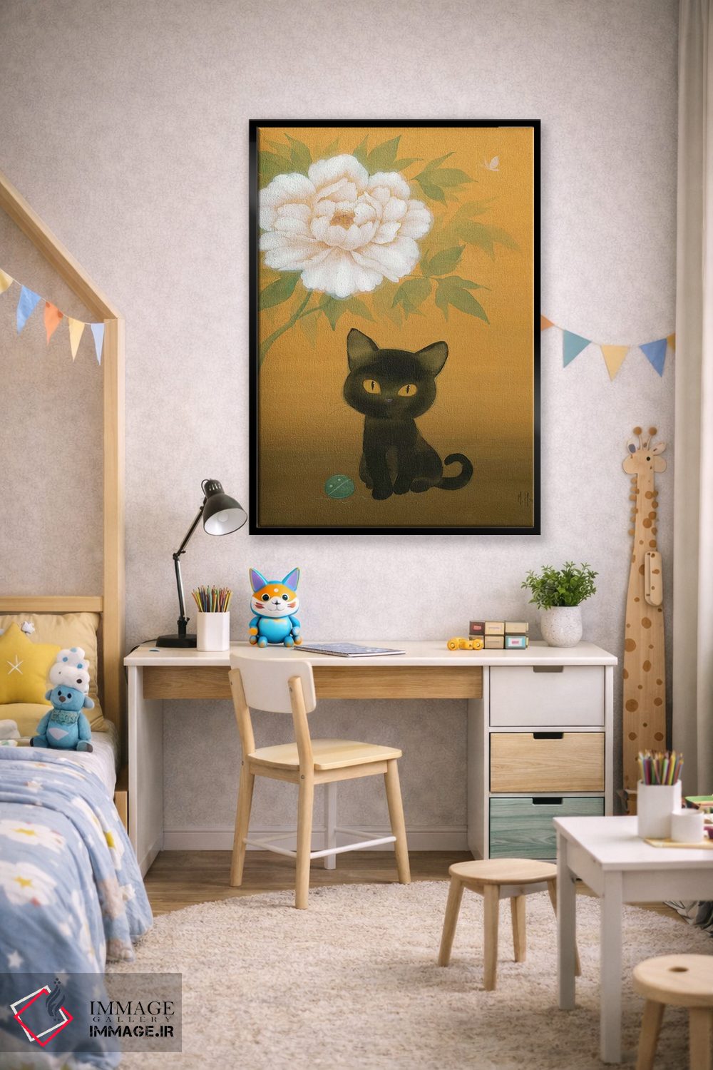 تابلو دکوراتیو گربه سیاه و گل صدتومانی اثر مارتین هسو