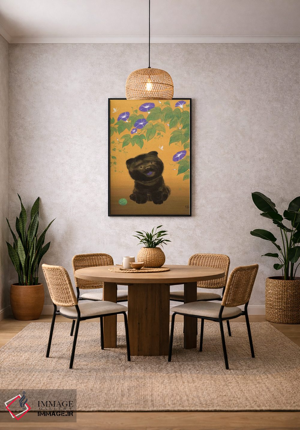 «سگ چو و پیچک صبحگاهی (چو: نژاد سگ)» اثرِ «مارتین هسو» از آن کارهاییست که مثل یک امضای بامزه اما متین عمل میکند؛ برای نشیمنهای خانوادگی انتخاب خوبیست. هم فضا را گرم میکند، هم شلوغش نمیکند.