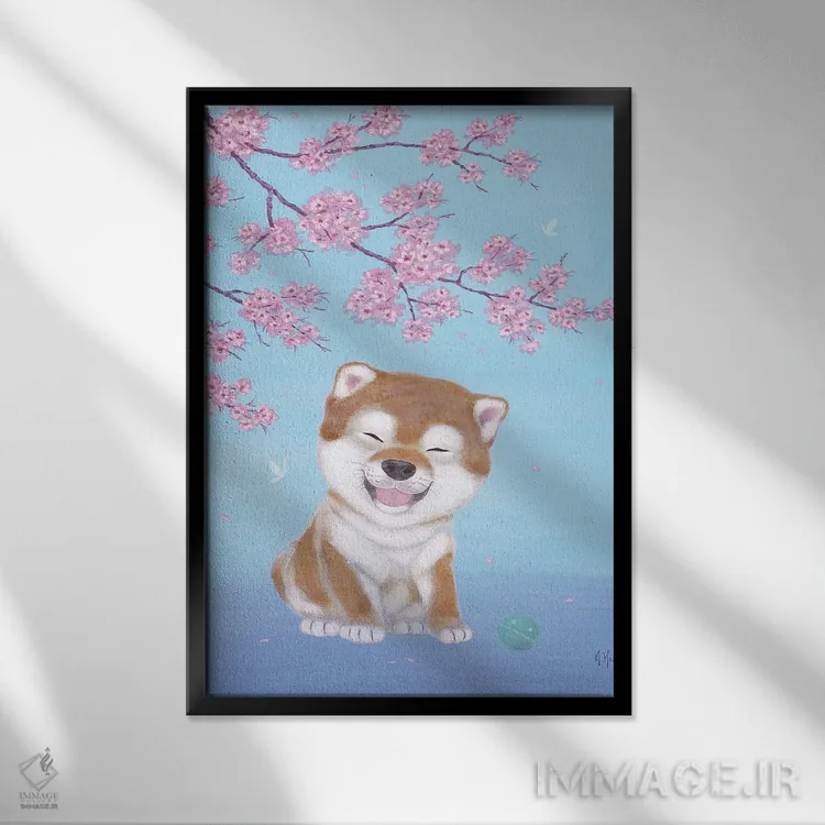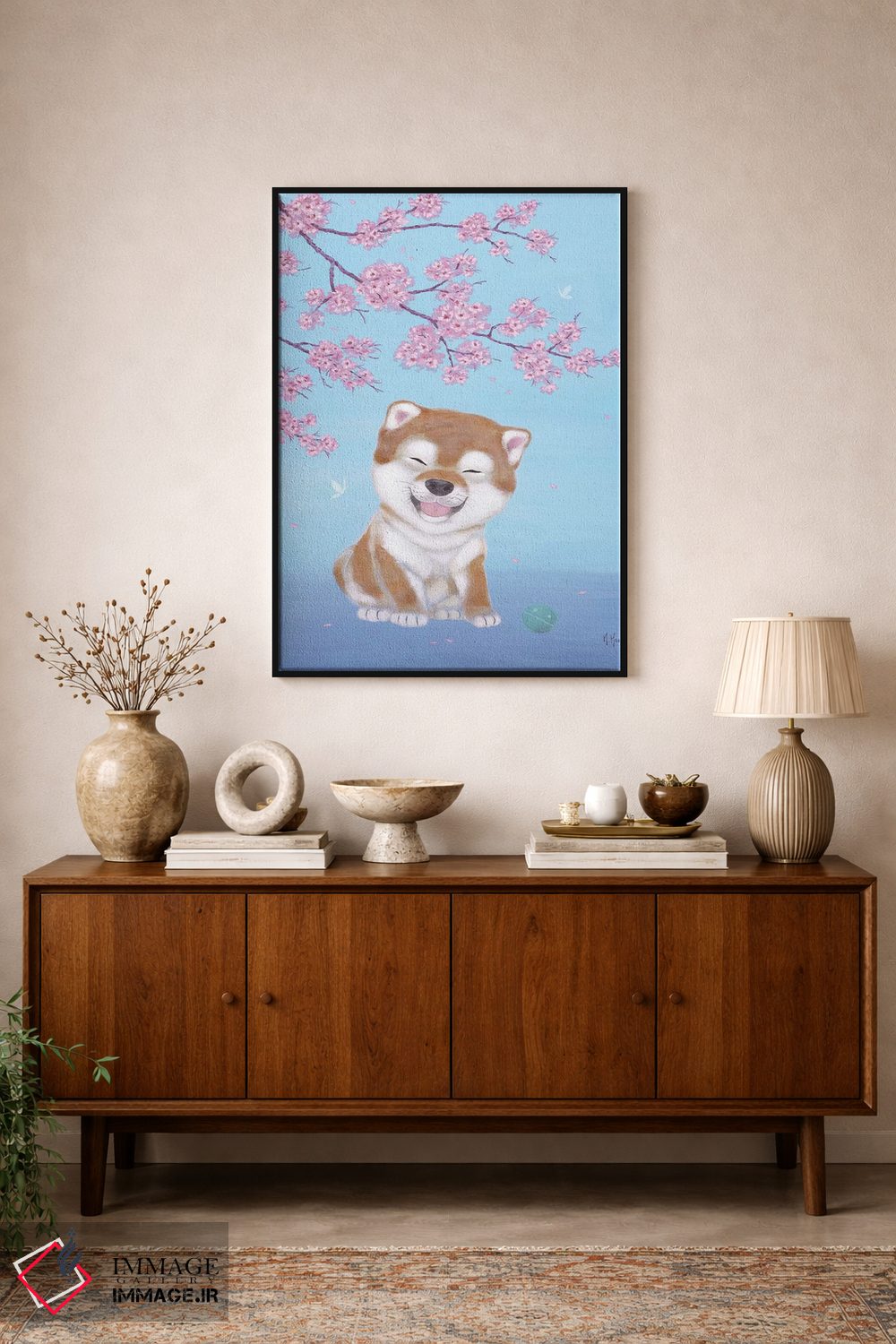 اگر به آثار حیوانات علاقه دارید، «شиба و شکوفههای گیلاس (شِیبا: نژاد سگ ژاپنی)» اثرِ «مارتین هسو» بافت و جزئیات را طوری نشان میدهد که نگاه میماند، برای راهروها و ورودیهای گرم گزینهٔ مناسبیست. با قاب چوبی یا مشکی، حس مرتبتری پیدا میکند.