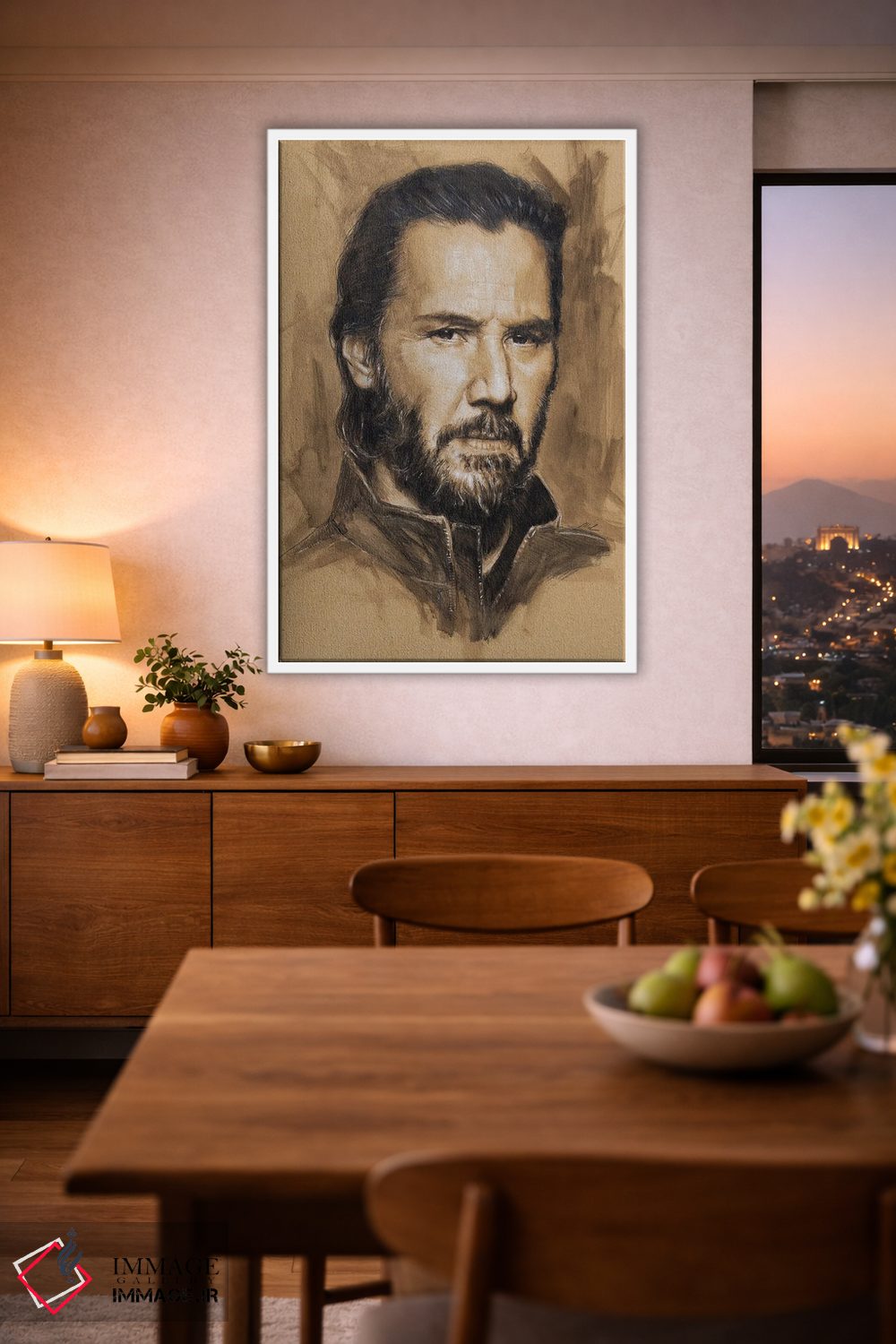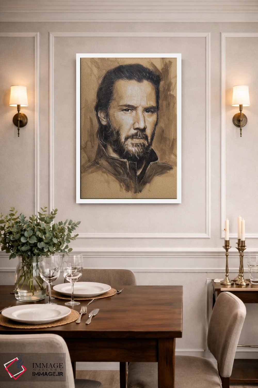 «"کیانو ریوز"» اثرِ «مارک لمان» میتواند بین نور و رنگ، تعادل خوشنشینی بسازد؛ برای فضاهایی که میخواهید آرام اما جدی دیده شوند پیشنهاد میشود. حضورش روی دیوار «مرتب» است؛ نه پر سر و صدا، نه بیاثر.