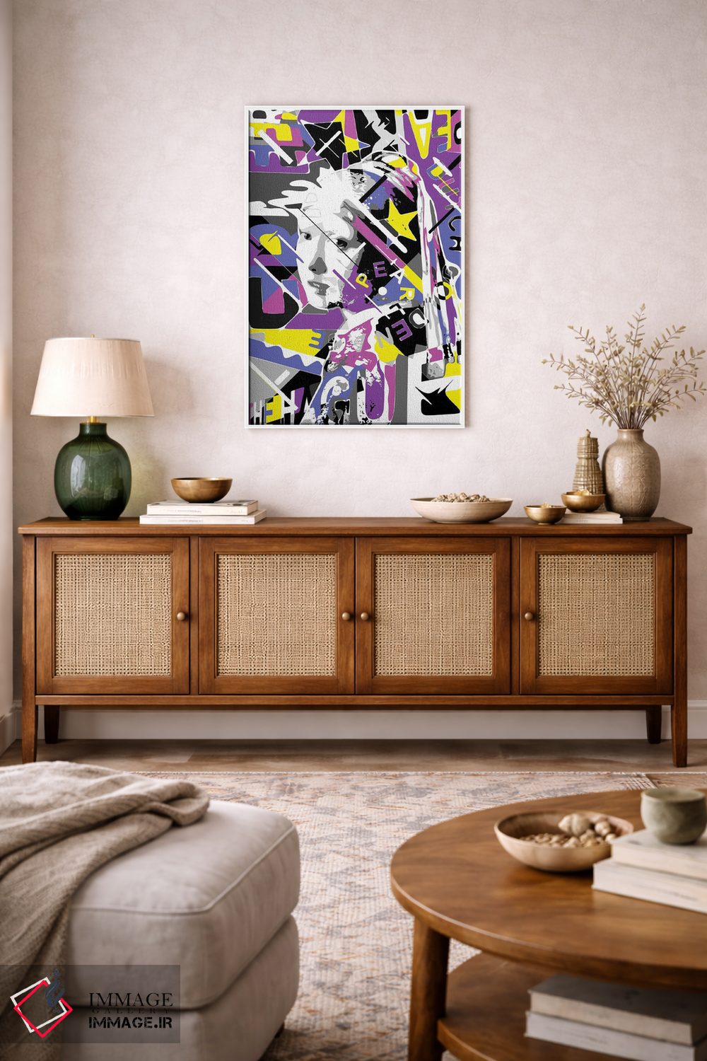 طراحی بوم گالری ایماژ بهگونهای است که اثر روی دیوار «پرداختشده» و حرفهای دیده شود—نه پرزرقوبرقِ بیپایه؛ بلکه دقیق و خوشپرداخت. با بافت ظریف کنواس، حس اثر هنری را در نگاه نزدیک نگه میدارد بهخصوص وقتی نور موضعی ملایم داشته باشید. با کنترل تونها، تعادل بهتری بین نور و رنگ ایجاد میکند و نتیجه را یکدستتر میکند. در نهایت، نتیجه چیزی شبیه تفاوت نسخهی معمولی با نسخهی باکیفیتتر است: نه رنگِ بیشتر، بلکه پرداخت بهتر.