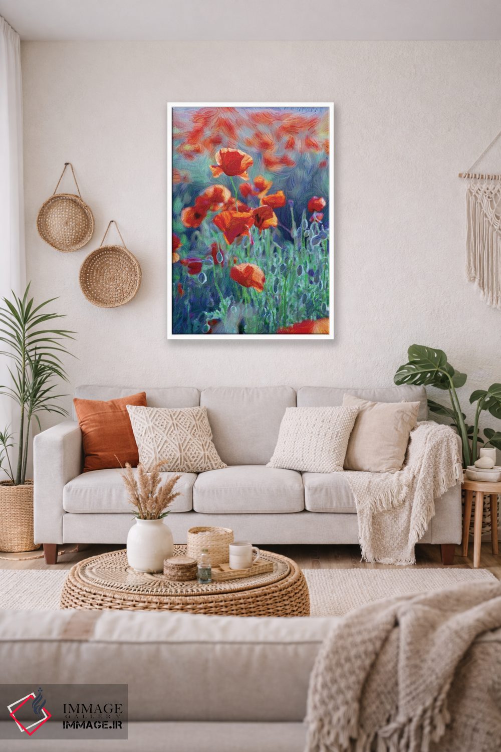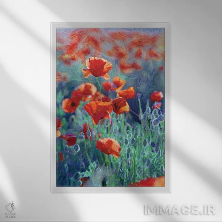 برای دیواری که میخواهید نرمتر دیده شود، «مزرعه شقایقهای قرمز، نقاشی دیجیتال» اثرِ «مایک کیف» جزئیات نزدیک را چشمنواز نشان میدهد؛ برای کنار میز آرایش یا کنسول انتخابی خوشسلیقه است. جزئیاتش از نزدیک هم ارزش تماشا دارد.