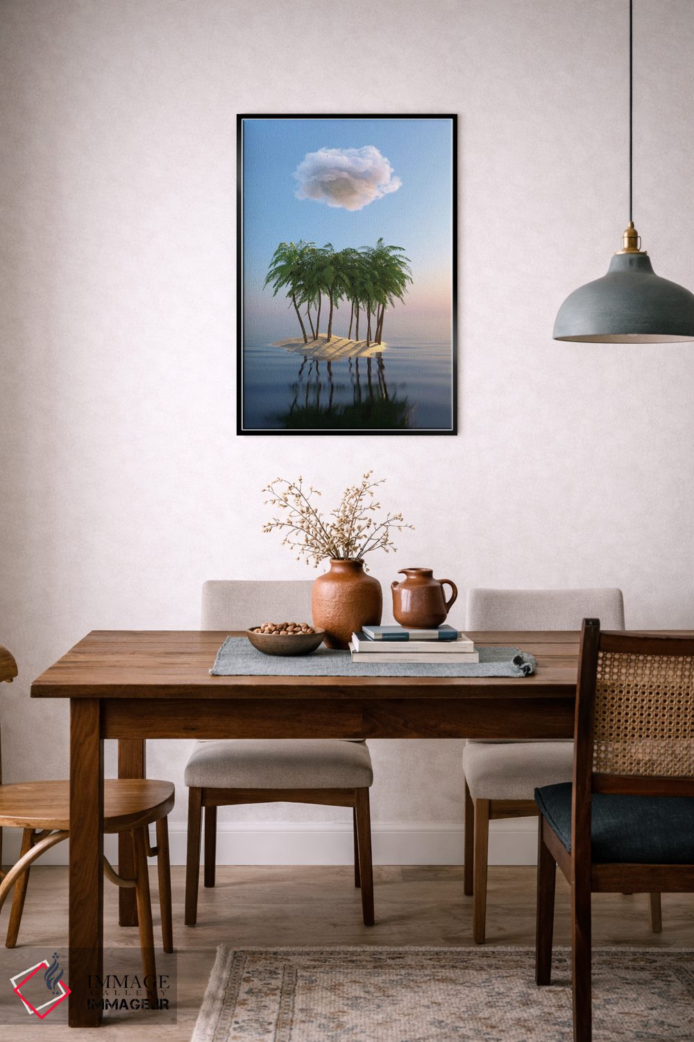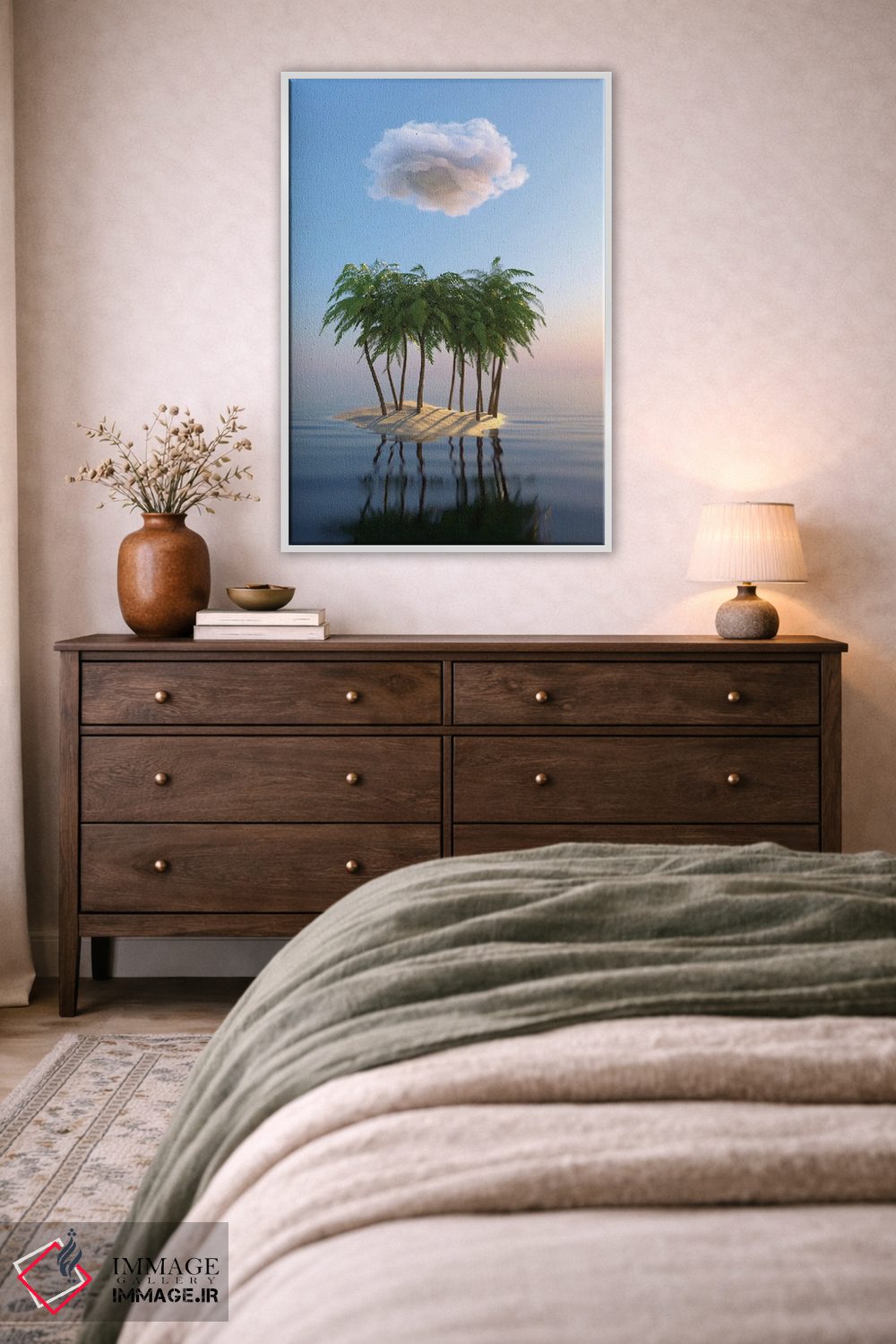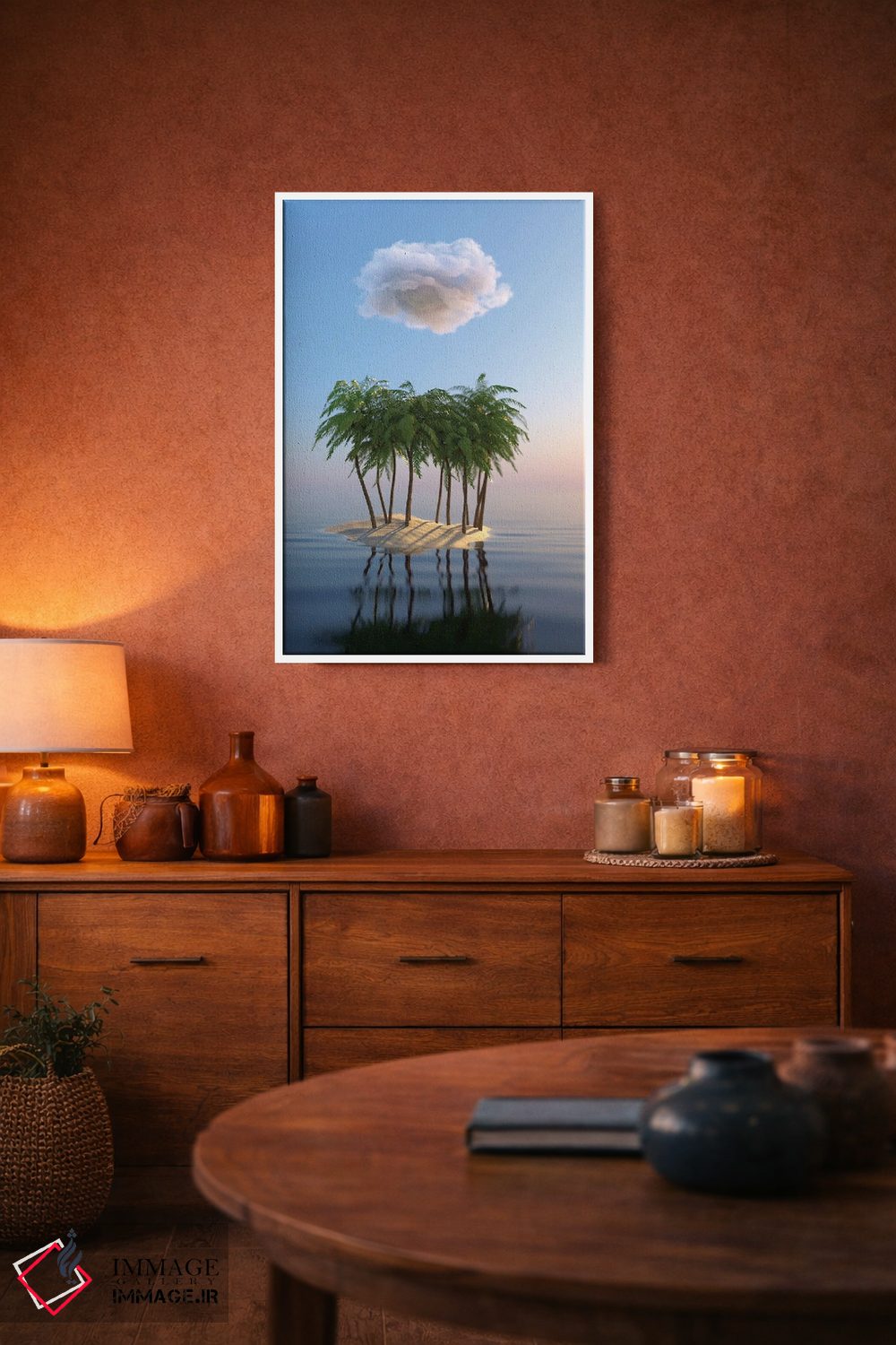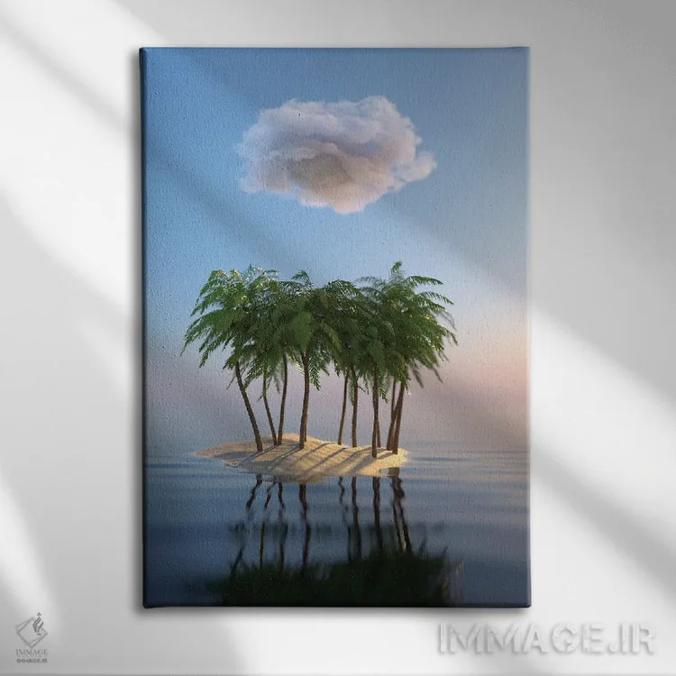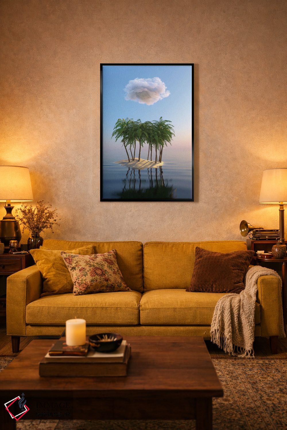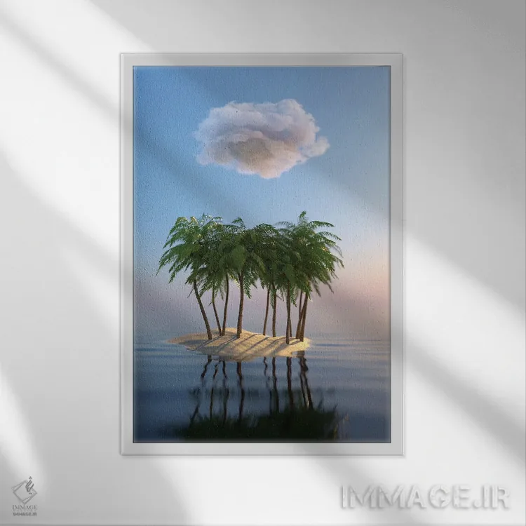 تابلو دکوراتیوِ «جزیره کوچک گرمسیری در دریا» با موضوعِ این اثر؛ انتخابی مطمئن برای فضاهایی که به سکون و وسعت نیاز دارند اثرِ «مایک کیف».