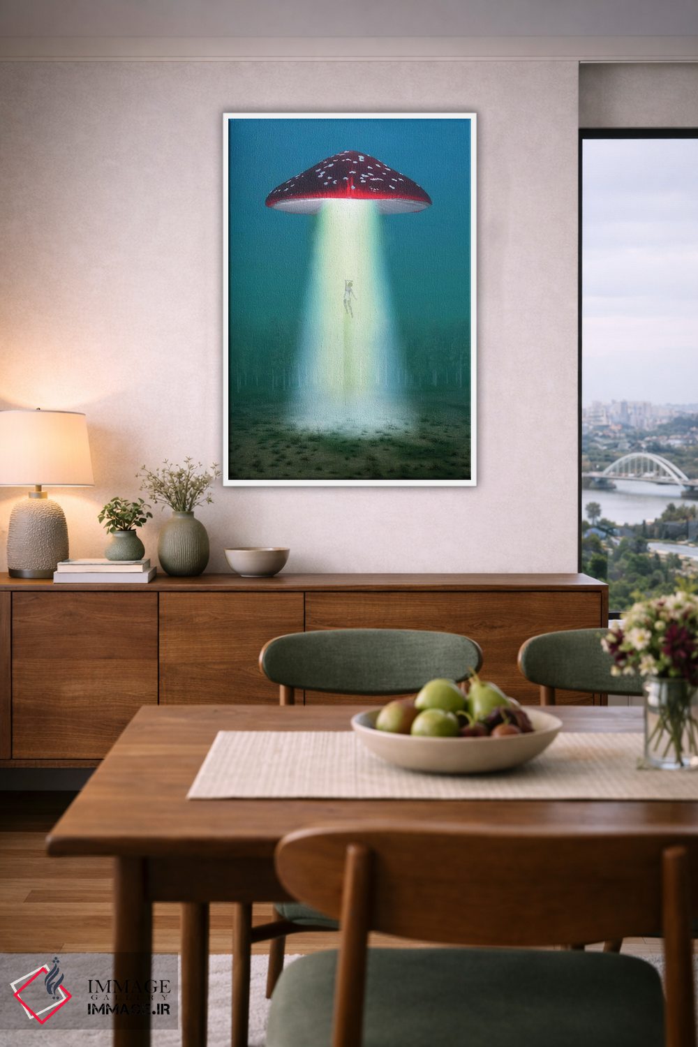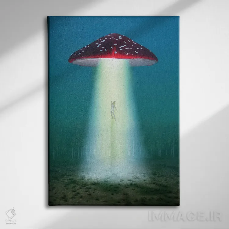 تابلو دکوراتیو قارچ توهم زا پرنده در شب زنی را می رباید اثر مایک کیف - نمای پرسپکتیو محصول