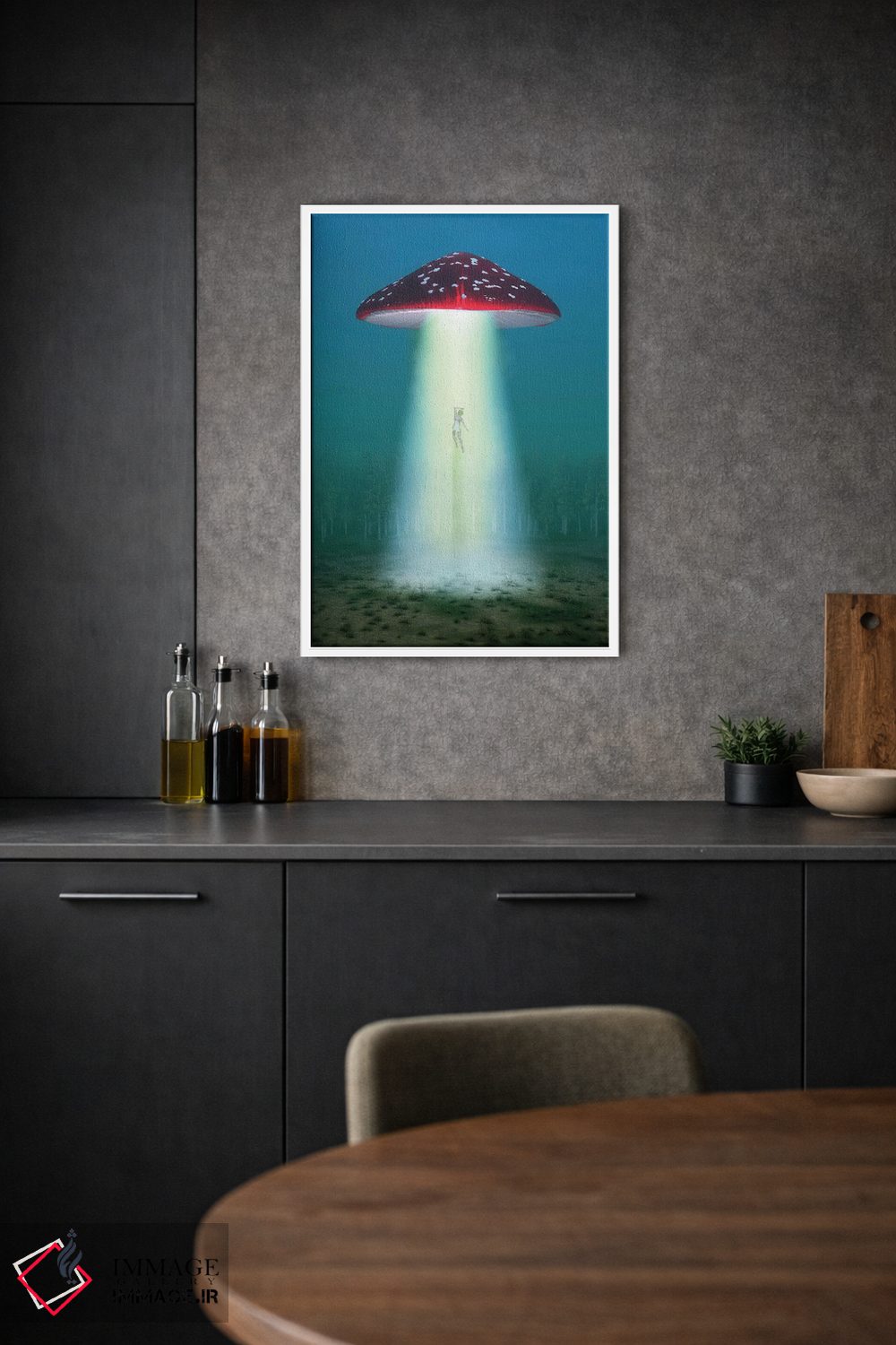 تابلو دکوراتیو قارچ توهم زا پرنده در شب زنی را می رباید اثر مایک کیف - D2B