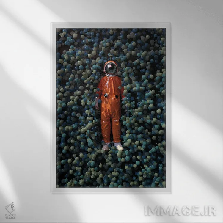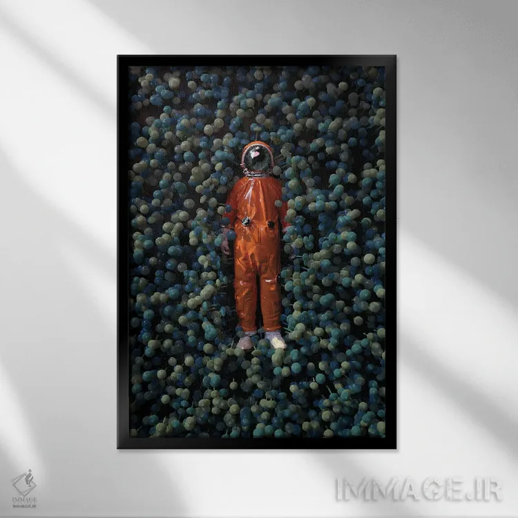 تابلو دکوراتیو فضانورد در حال دراز کشیدن میان قارچ ها اثر مایک کیف