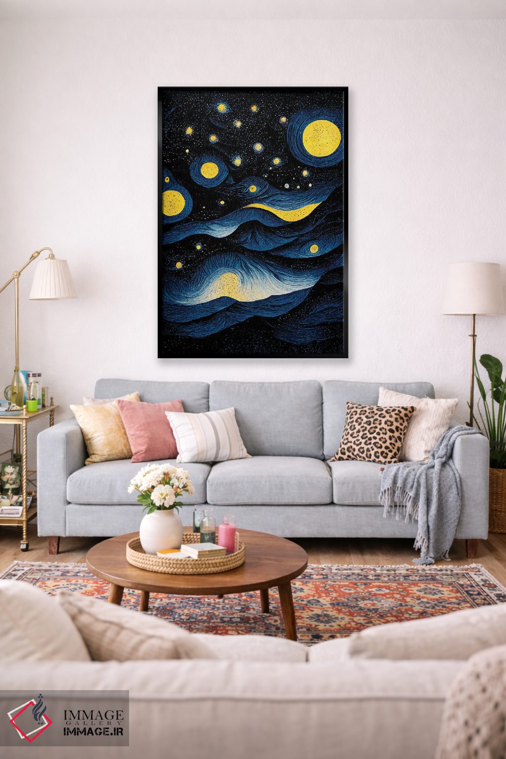 بوم گالری ایماژ نسخهی چیدماناتیوِ حرفهای از یک اثر هنری است؛ روی کنواس سفیدِ یکدست و بدون اسید با اجرای چاپ هنریِ دقیق به روش جیکلی (Giclée) با رنگهای آرشیوی UltraChrome HDR برای طبیعیتر دیده شدن رنگها روی دیوار، خروجی، یک «تابلو» است نه یک چاپ ساده. هر تابلو بهصورت سفارشی روی چهارچوب کشیده میشود و با یراق مناسب آمادهی نصب است.