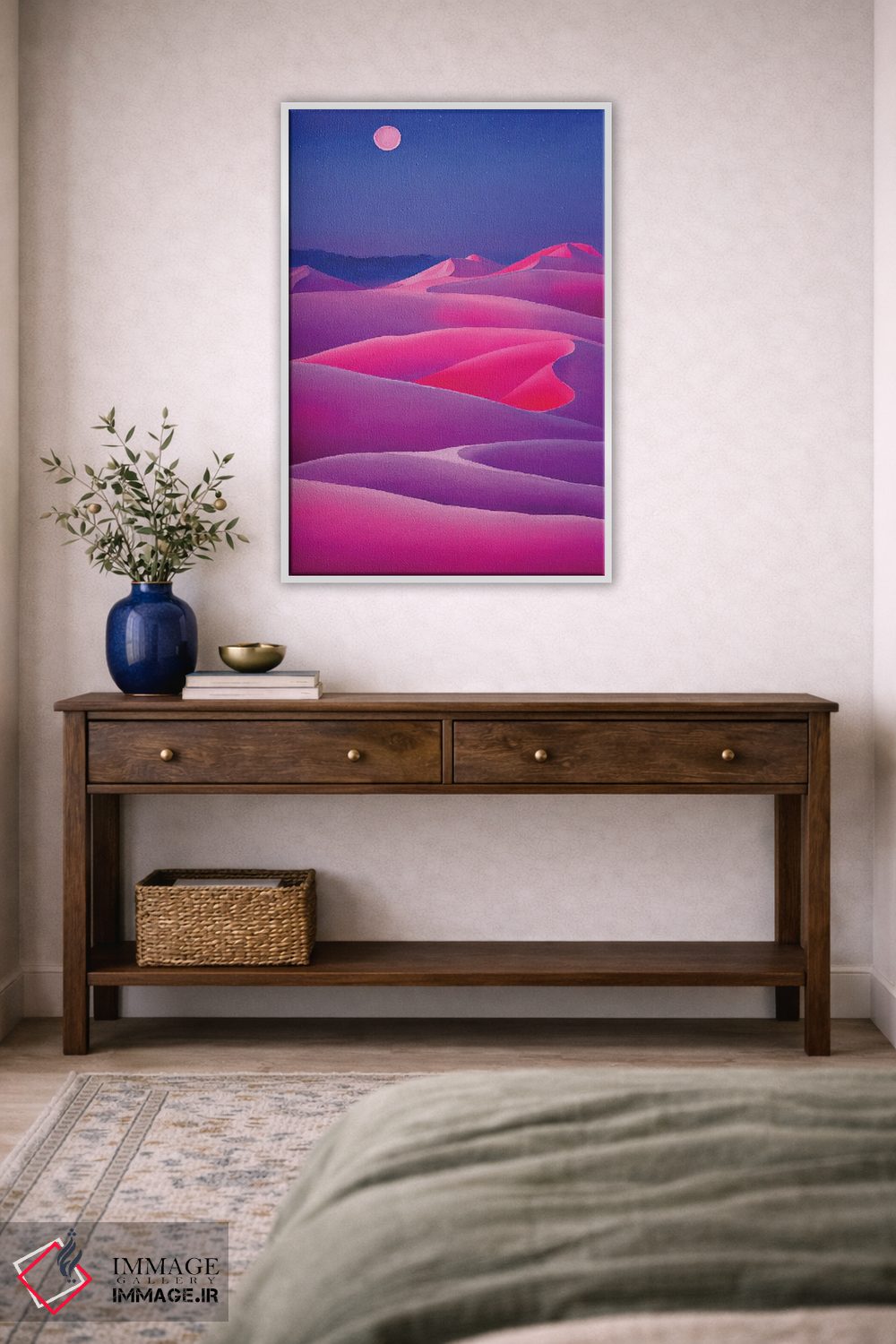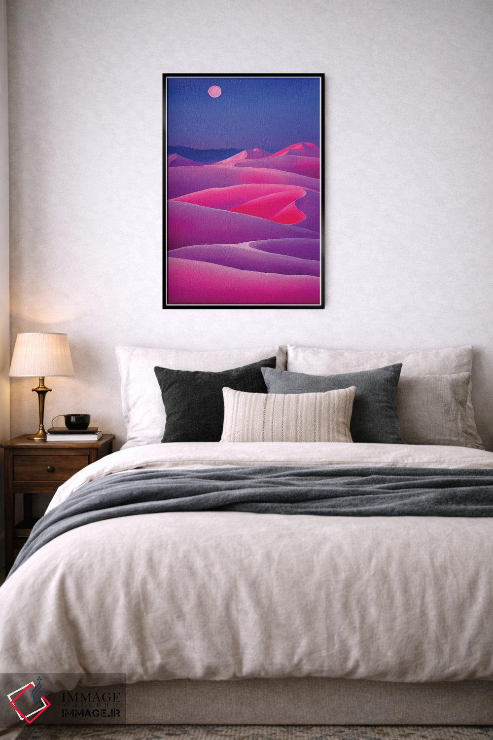 طراحی بوم گالری ایماژ بهگونهای است که اثر روی دیوار «پرداختشده» و حرفهای دیده شود—نه پرزرقوبرقِ بیپایه؛ بلکه دقیق و خوشپرداخت. بافت ظریف کنواس باعث میشود حس اثر هنری را در نگاه نزدیک نگه میدارد و در چیدمانهای مدرن و کمینهگرا خیلی خوب مینشیند. در ارائهی آماده نصب، برای یک ارائهی حرفهای ضروری است و نتیجه را یکدستتر میکند. اگر دوست دارید قاب هم اضافه شود، میتوانید از گزینههای سایت استفاده کنید یا برای انتخاب سفارشی هماهنگ کنید؛ برای هدیهی هنری هم انتخاب محترمانهای است.