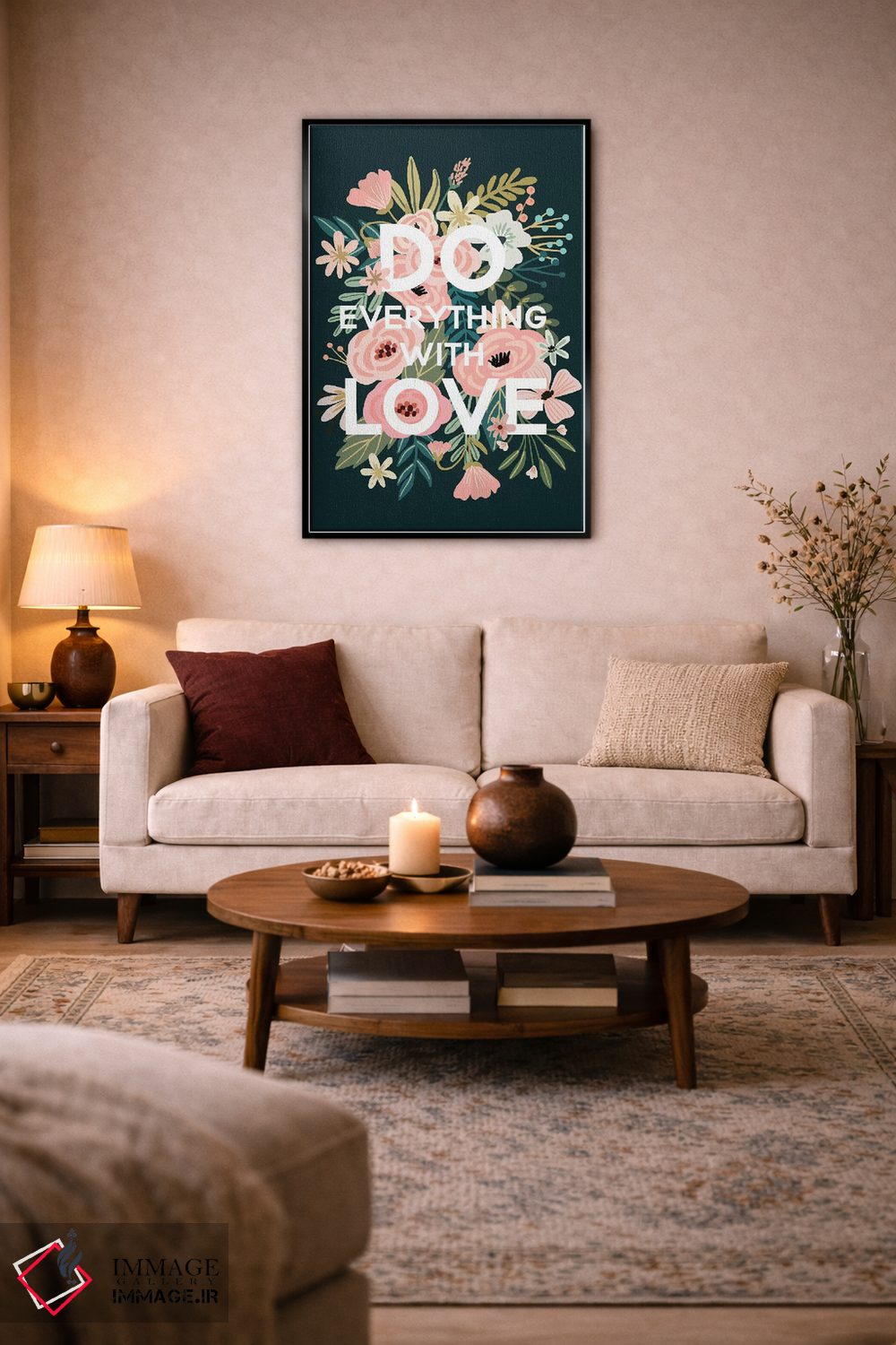 تابلو دکوراتیو همه کارها را با عشق انجام بده اثر میا چارو