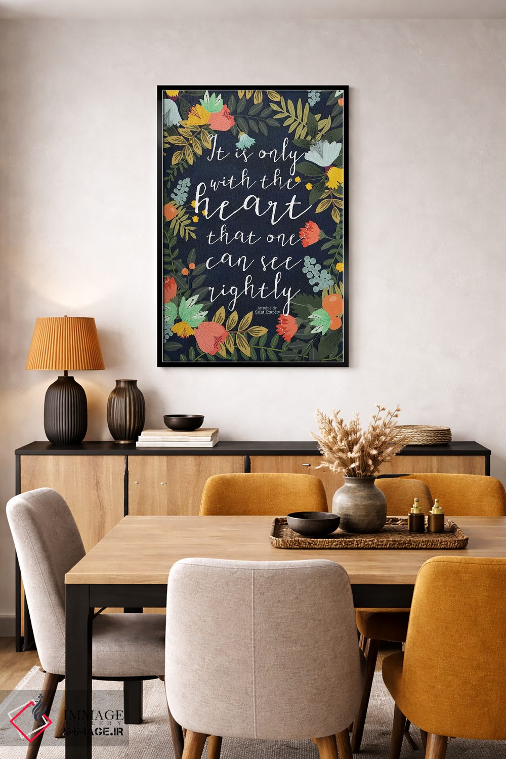 «تنها با قلب است» اثرِ «میا چارّو» با حالوهوای دکور معاصر و موضوعِ این اثر، برای نشیمنهای امروزی و چیدمانهای ساده انتخابی دقیق است.