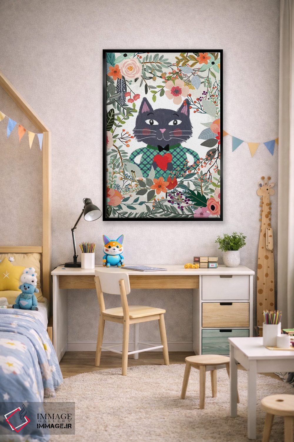 تابلو دکوراتیو گربه و قلب اثر میا چارو