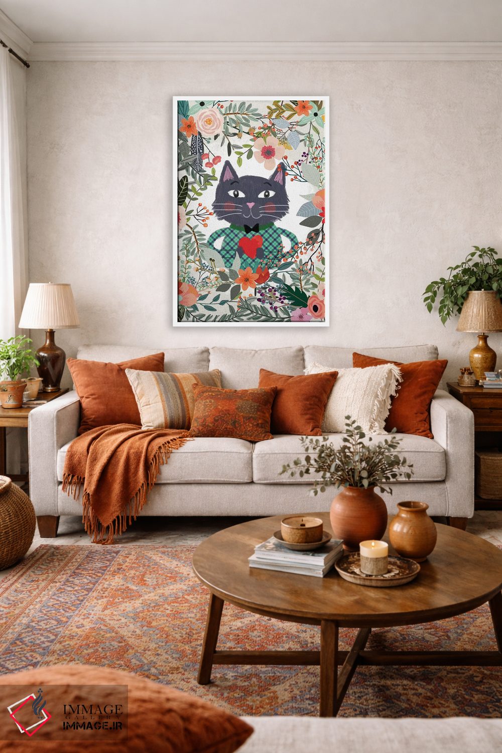 این اثر با عنوان «گربه و قلب» اثرِ «میا چارّو» بافت و جزئیات را طوری نشان میدهد که نگاه میماند؛ برای راهروها و ورودیهای گرم انتخابی خوشسلیقه است. به دیوار، قصه میدهد—اما قصهای آرام و شیک.