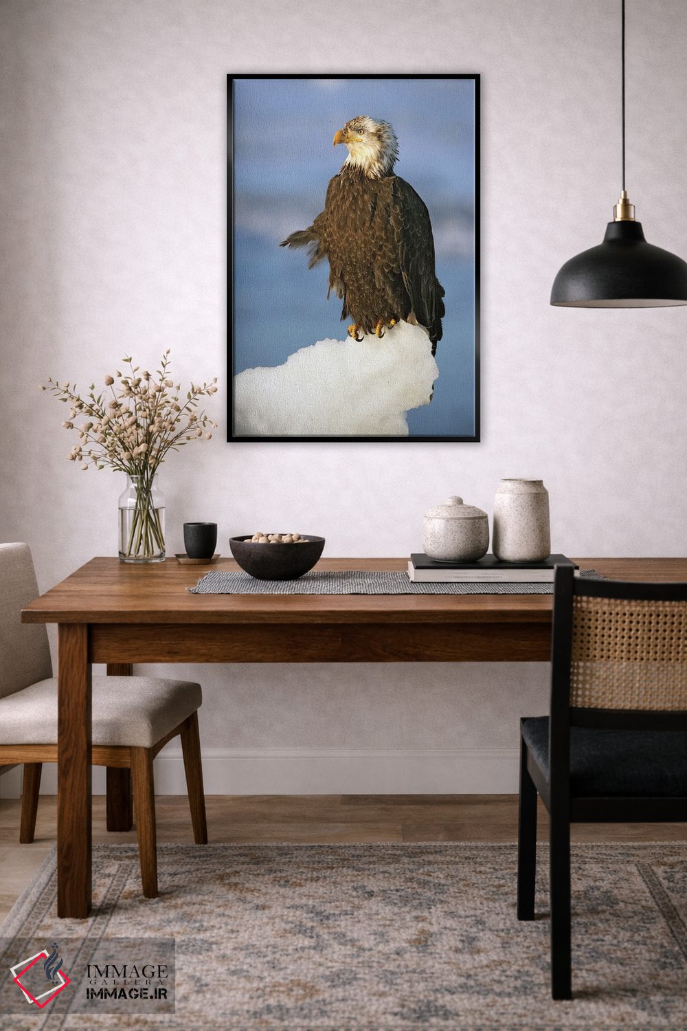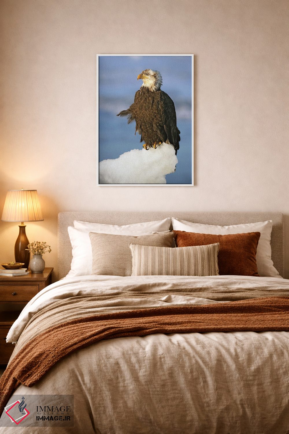 اگر به آثار حیوانات علاقه دارید، «عقابها آلاسکا ۴» اثرِ «میگل لاسا» فضا را صمیمیتر و دعوتکنندهتر نشان میدهد، برای اتاق کودک (بدون لحن کودکانه) گزینهٔ مناسبیست. حسش صمیمی است، اما کیفیتش جدی و خوشپرداخت.