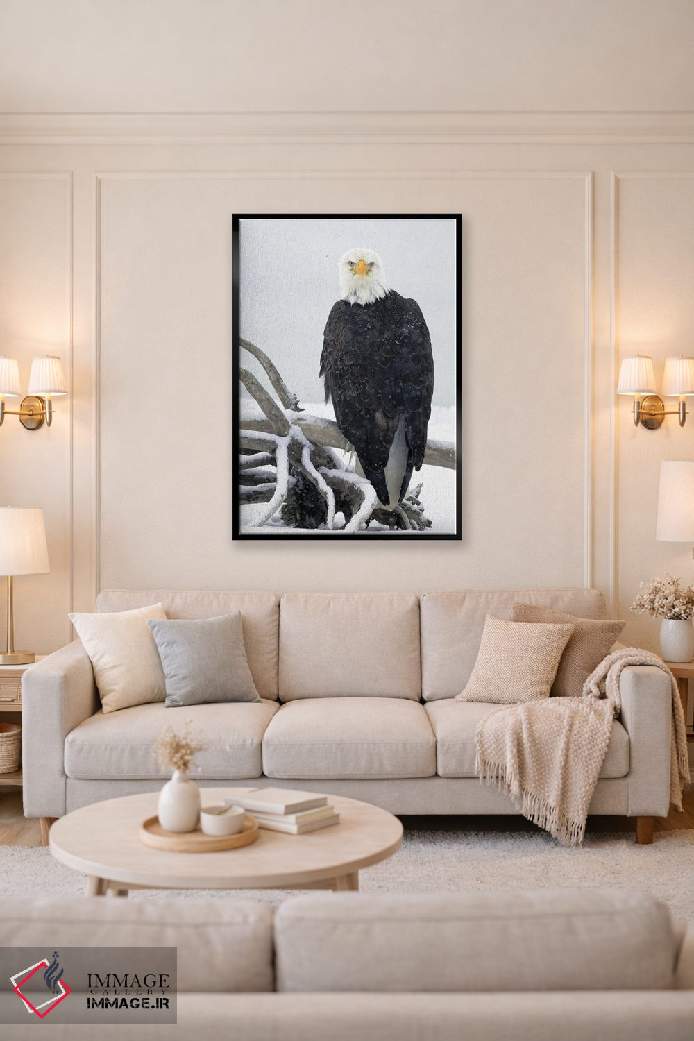 اگر به آثار حیوانات علاقه دارید، «عقاب آلاسکا ۱۹» اثرِ «میگل لاسا» یک لبخند ریز به چیدمان میدهد، برای دکورهایی با رنگهای خنثی گزینهٔ مناسبیست. حسش صمیمی است، اما کیفیتش جدی و خوشپرداخت.