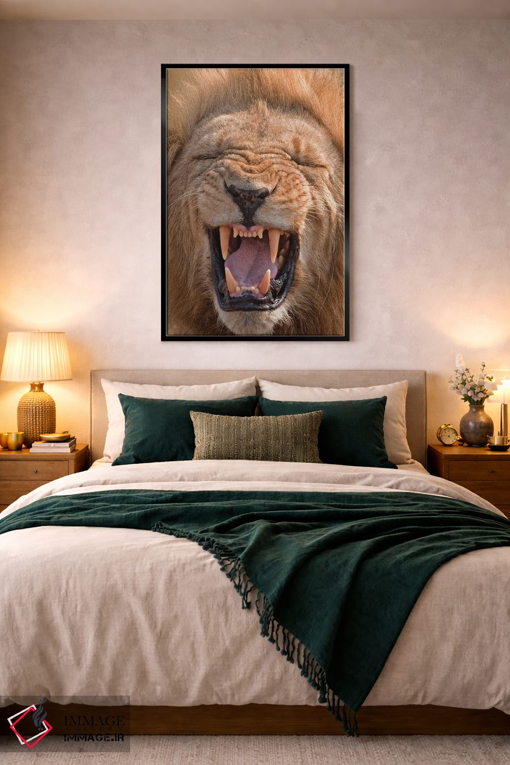 براساس پالت گرم اثر، قاب تیک گرم (چوبی) پیشنهاد اول است و مشکی مات (فریم متوسط) مکمل. برای سفارشهای پروژهای با ابعاد و قابهای اختصاصی با ایماژ در تماس باشید.
