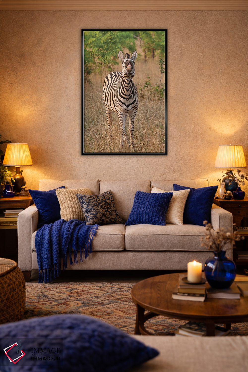 براساس پالت ترکیبی اثر، قاب تیک گرم (چوبی) پیشنهاد اول است و مشکی مات (فریم متوسط) مکمل. برای سفارشهای پروژهای با ابعاد و قابهای اختصاصی با ایماژ در تماس باشید.
