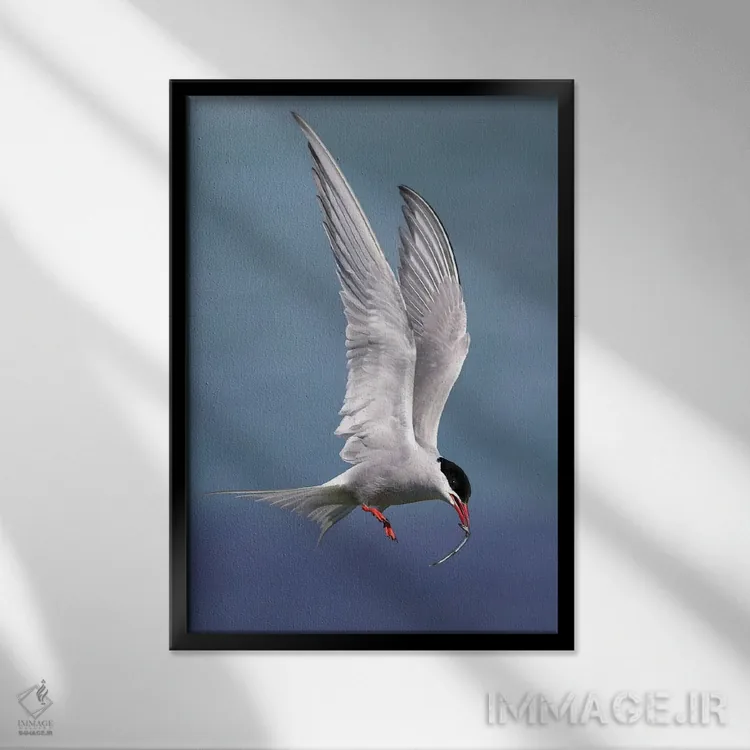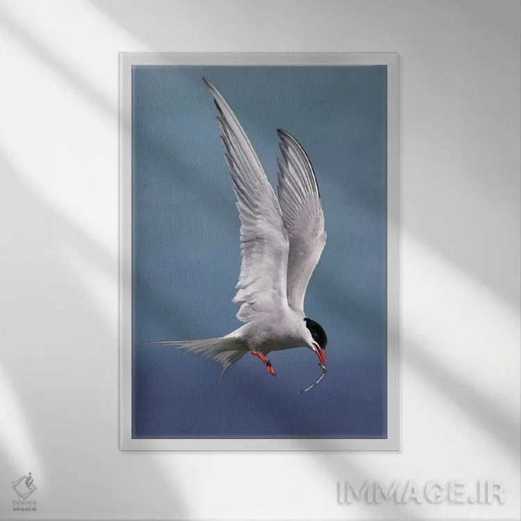براساس پالت سرد اثر، قاب سفید مات (فریم باریک) پیشنهاد اول است و نقرهای برسخورده (متالیک) مکمل. برای سفارشهای پروژهای با ابعاد و قابهای اختصاصی با ایماژ در تماس باشید.