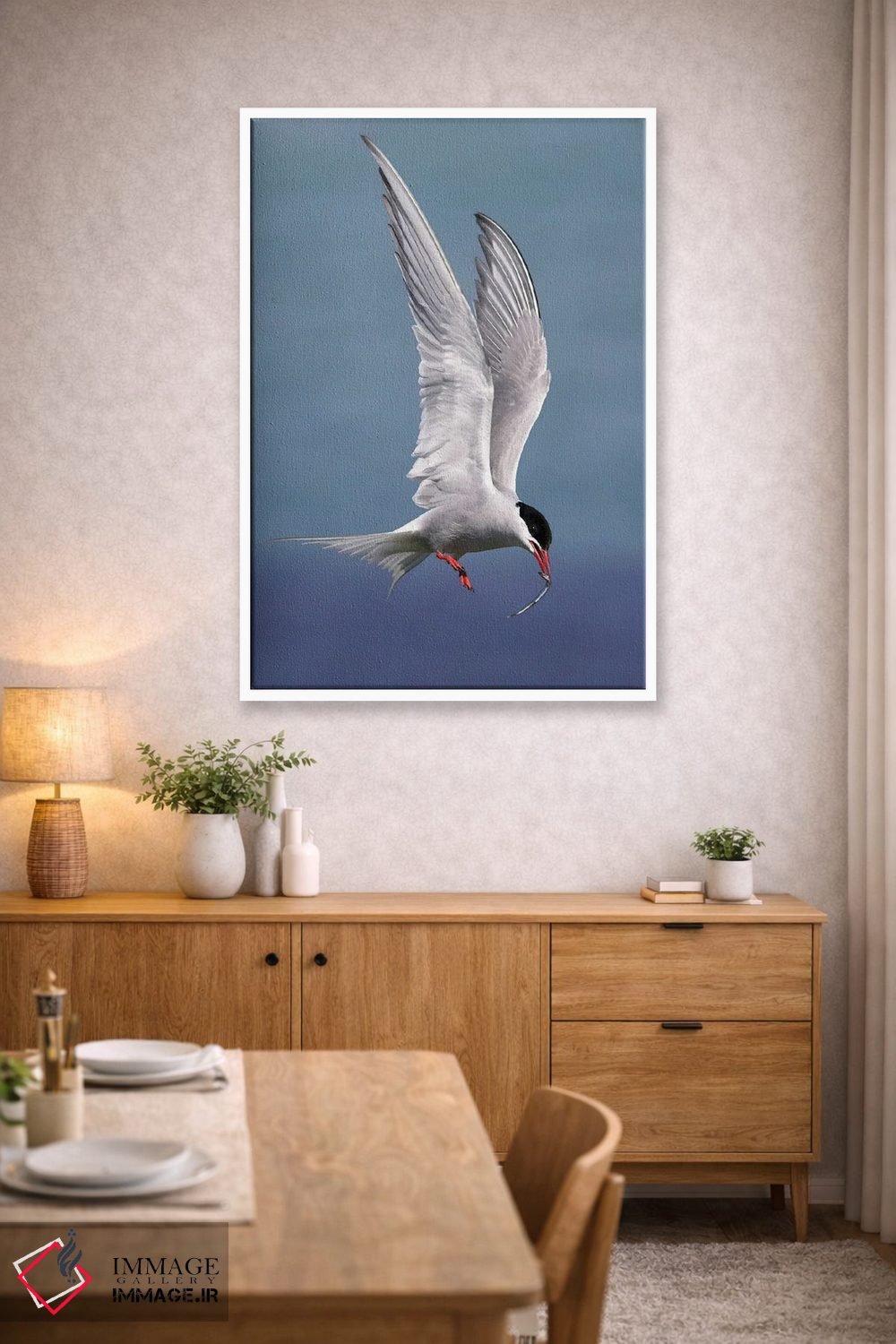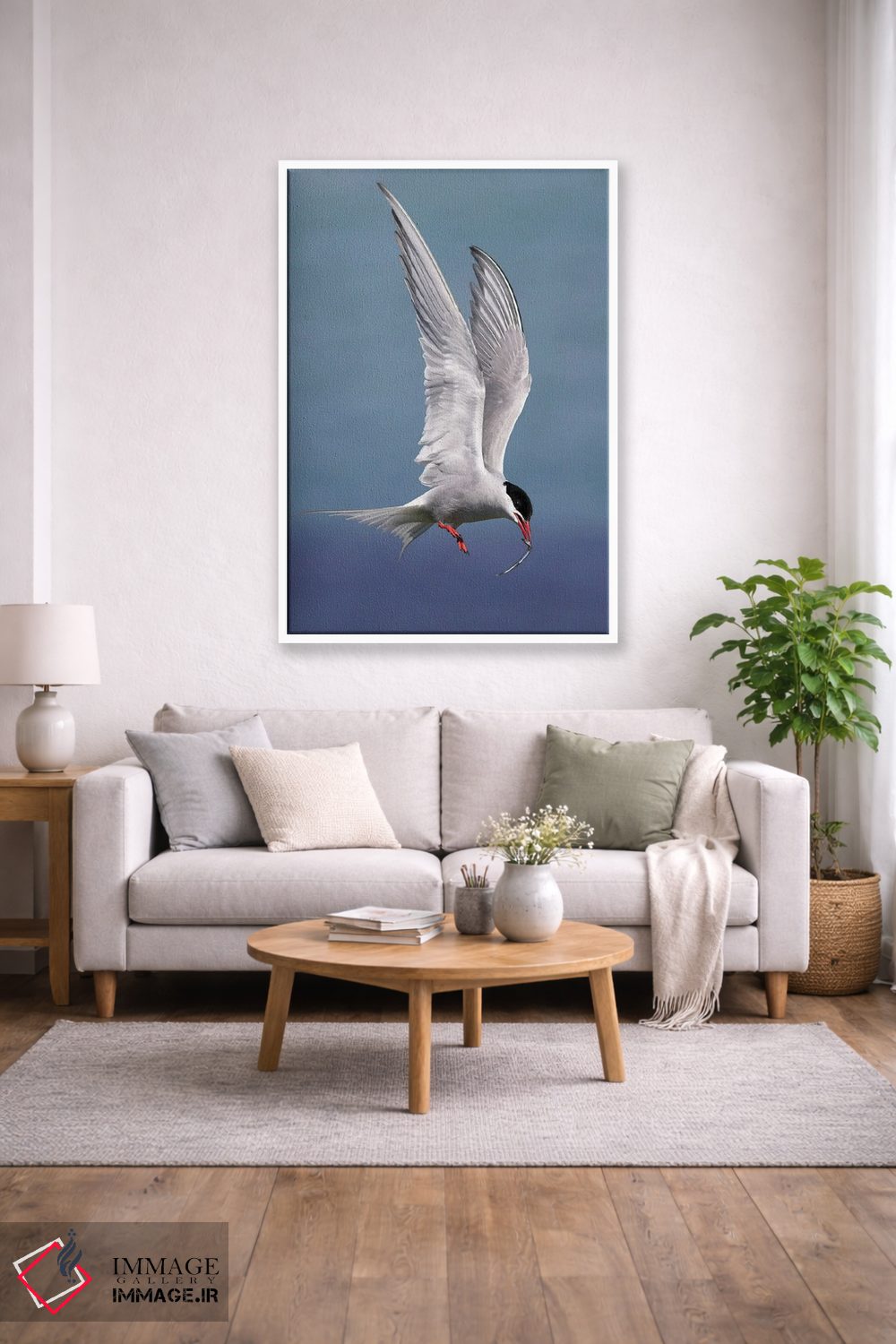 اگر محیط کمینهگرا است، آبی را در فرش یا پرده (بهصورت خیلی کم) کم و دقیق اضافه کنید تا ترکیببندی قویتر شود. انتخاب قاب هم میتواند این اکسنت را تقویت کند.