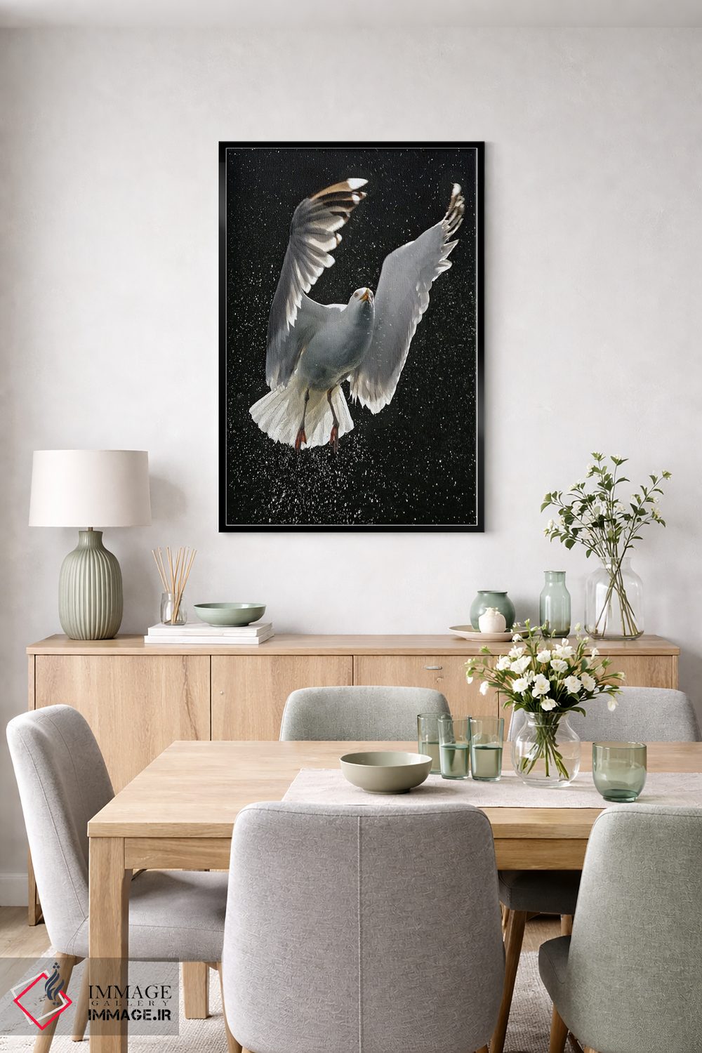 براساس پالت خنثی اثر، قاب مشکی مات (فریم باریک) پیشنهاد اول است و سفید مات (فریم باریک) مکمل. برای سفارشهای پروژهای با ابعاد و قابهای اختصاصی با ایماژ در تماس باشید.